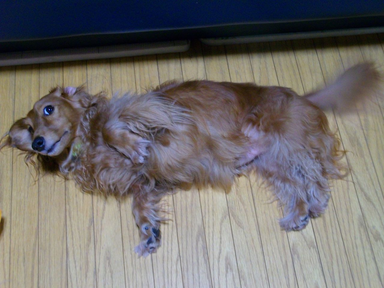 ビー坊が座ってるソファの下でゴロン