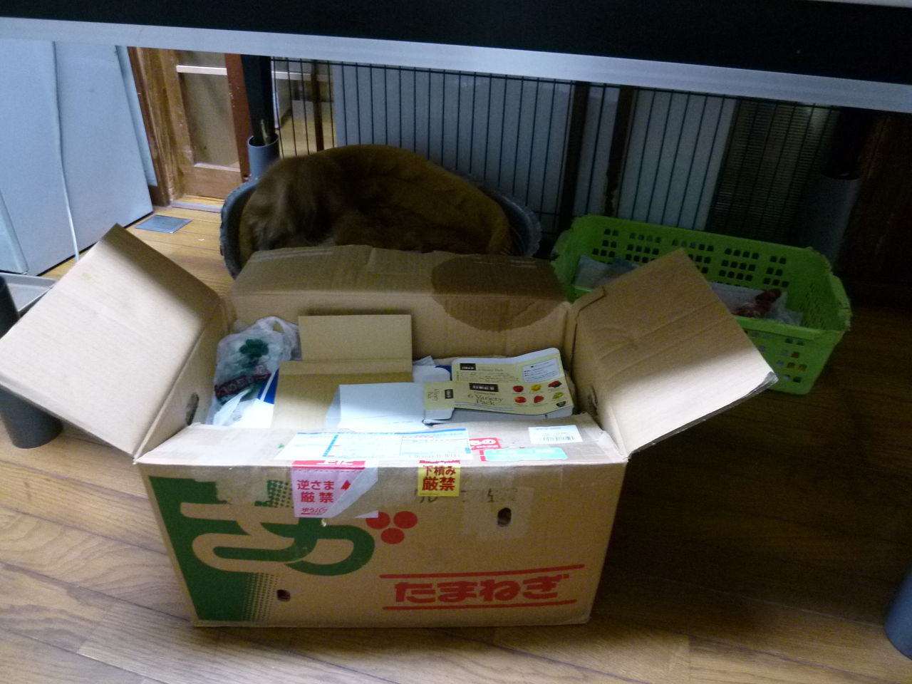 捨てるものを入れてた 段ボールの上に