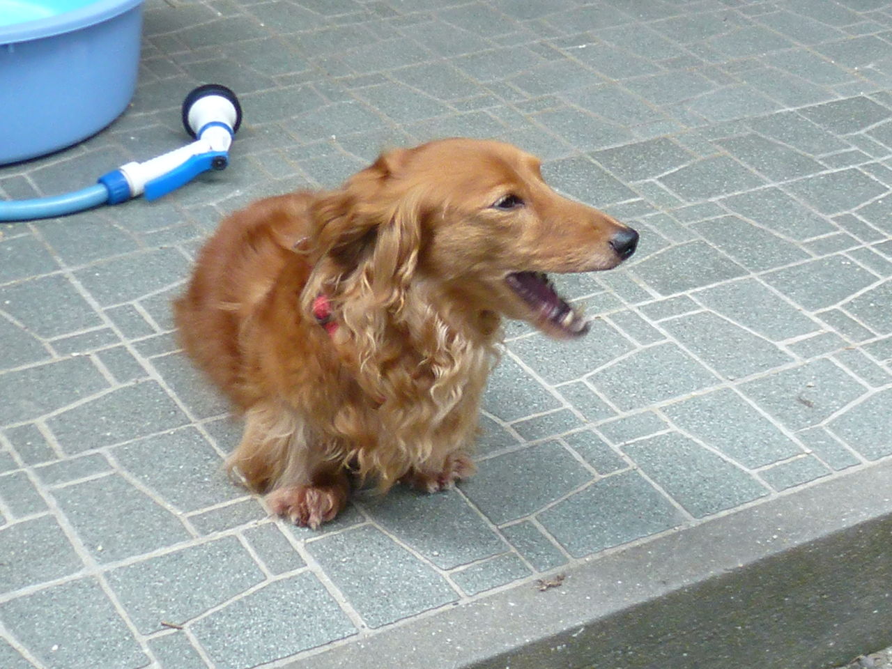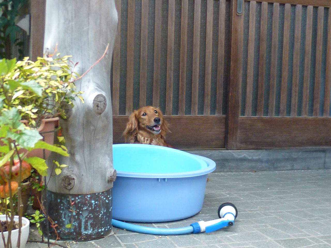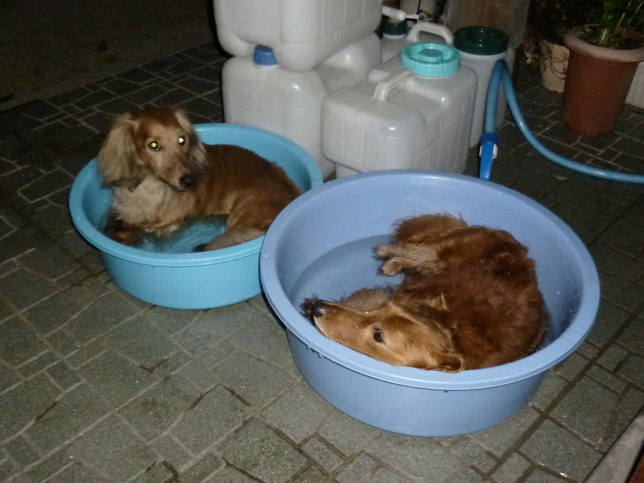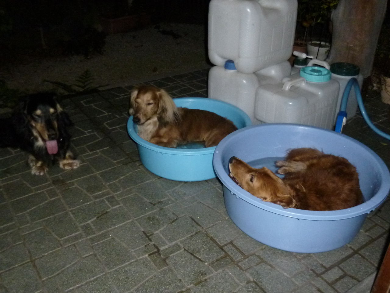 散歩後の 盥プール
