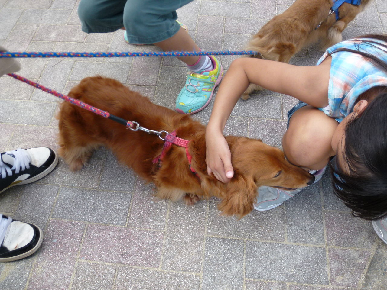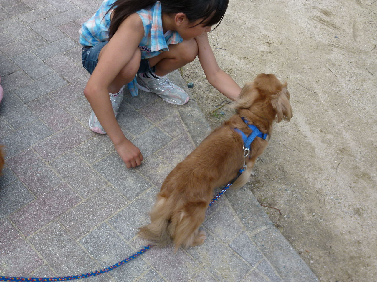 公園で 駆け寄って来た女の子に触ってもらって