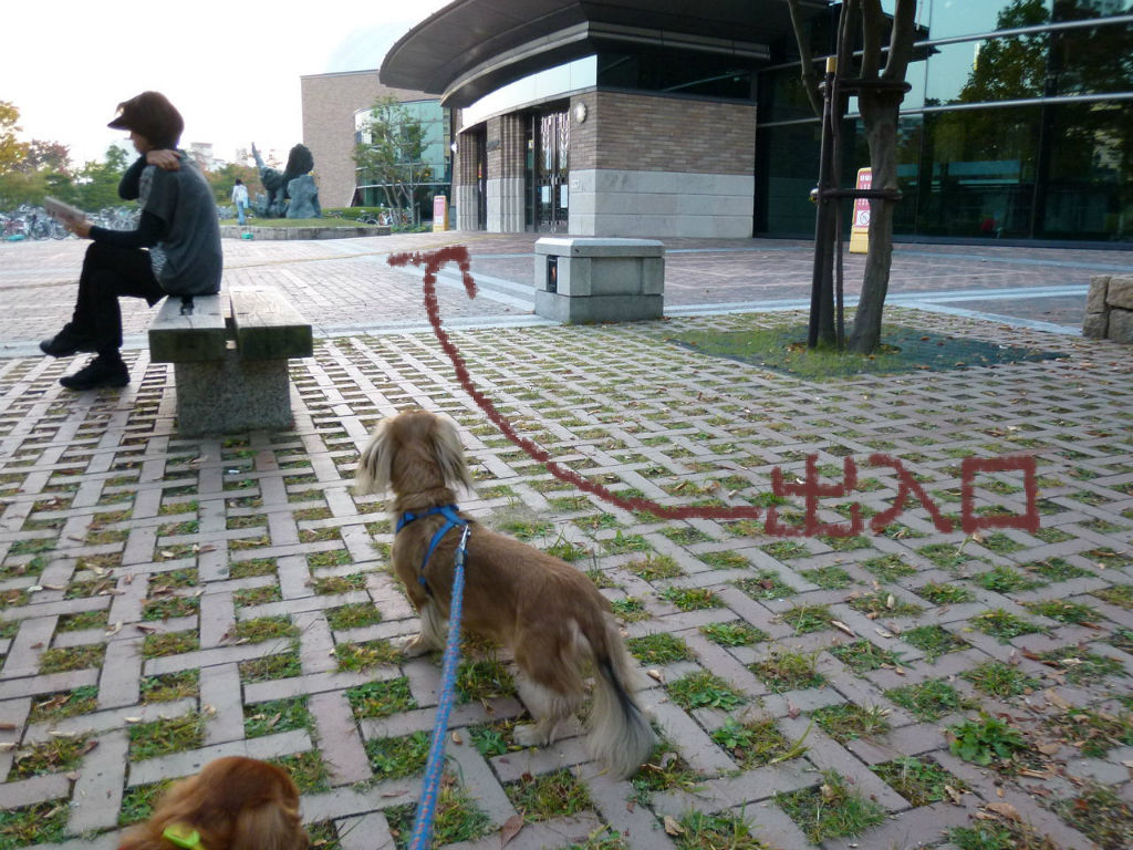 もちろん わんずは 図書館に入れませんので