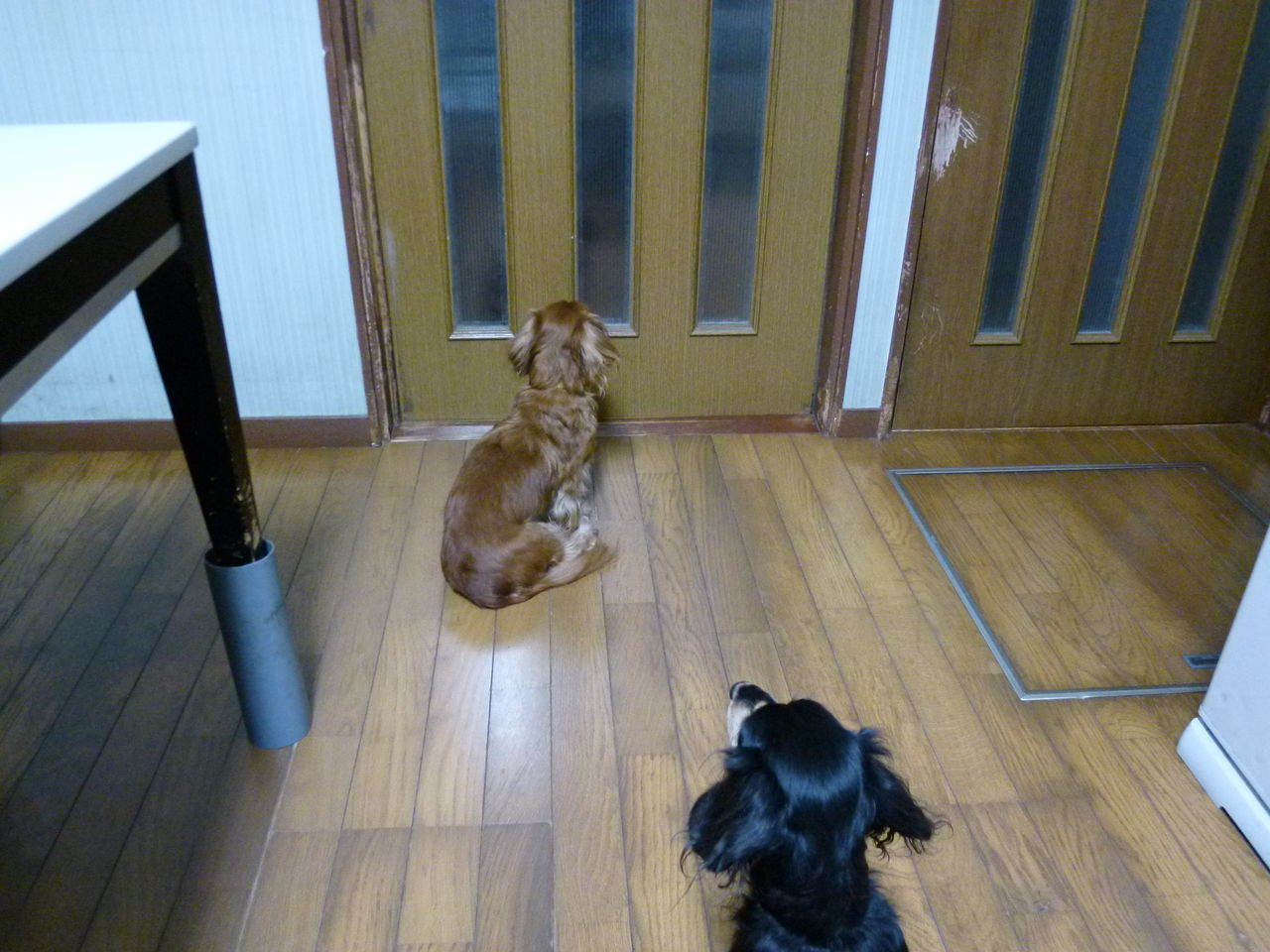 3匹ドアのところで待ってます