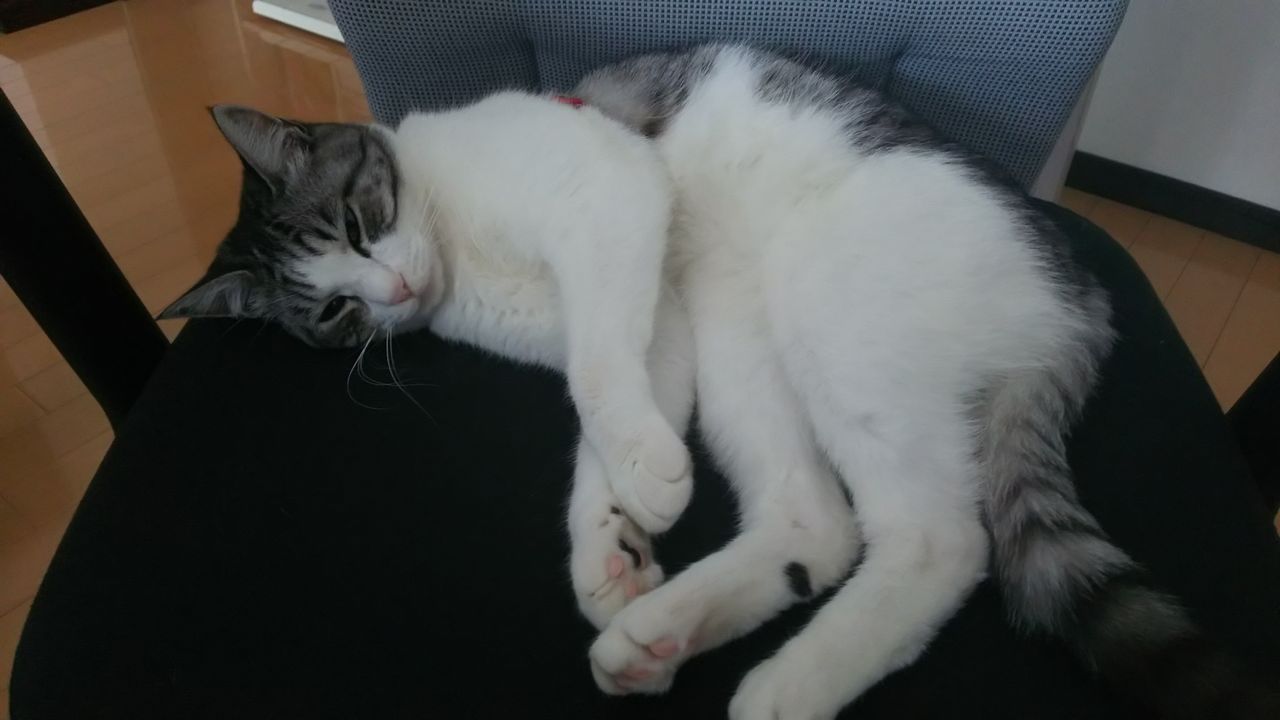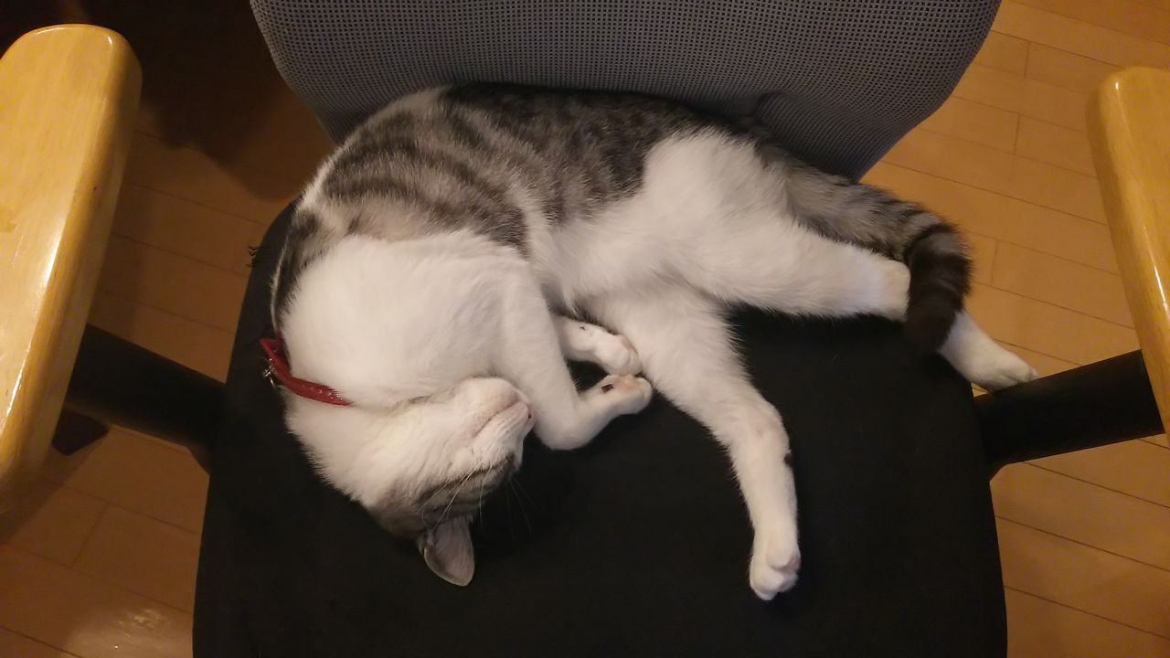 その小悪魔夢ぽんちゃん う~んと叱られてもいいはずなのに なぜかパンのお裾分けもしっかり貰い(もちろんわんずもだけど) カップ等洗って戻ってきたならば 超幸せそうなこんな寝姿で しかもまたまた私の椅子を占領中・・・