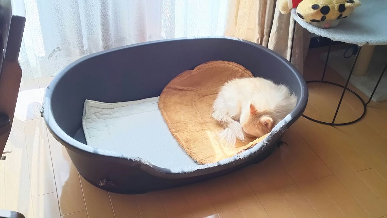 カゴ撤去の代わりに 一応敷物クッションだけは差し上げてるんだけど お気に召されてはいらっしゃらないご様子・・・