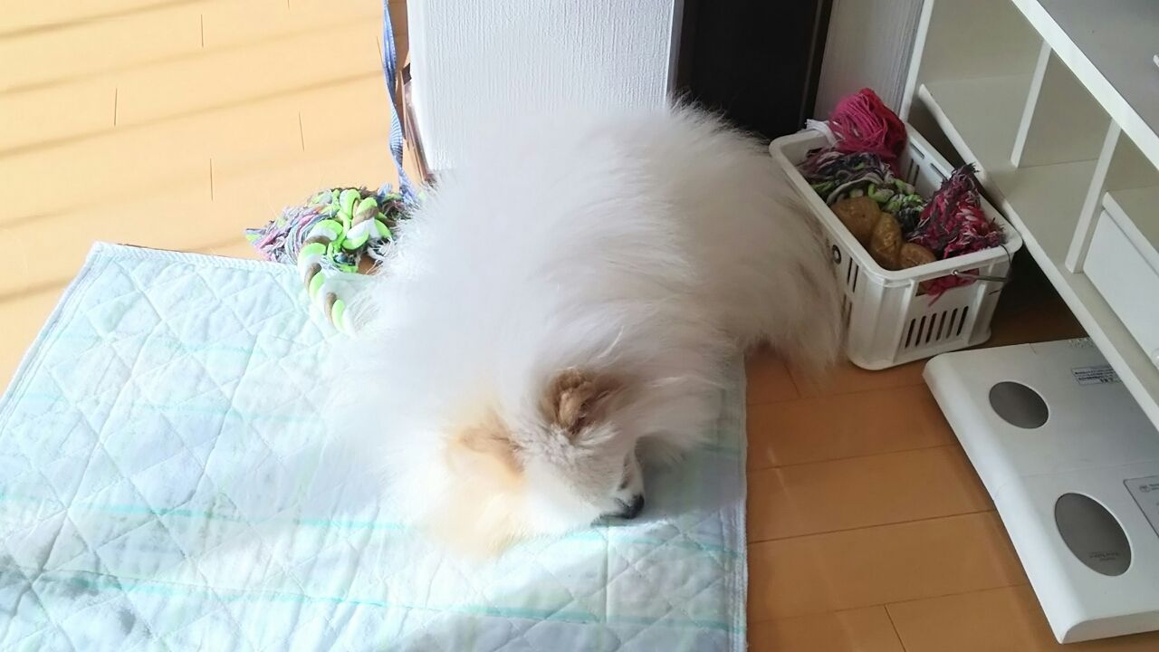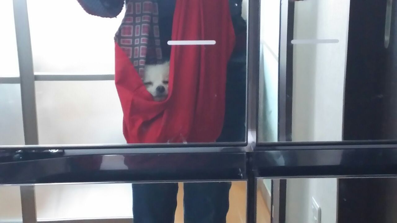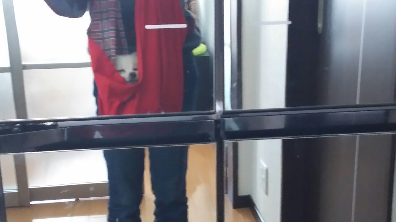 2.3㌔とはいえ 掃除機を掛けるのは腰が痛いよぉ と私がぼやいても 当犬 ここを出る気はナッシング(むしろ寝てるし・・・)鏡ではなく 冷蔵庫に映ったむぎを撮ってるのでちょっとピントが合ってませんが ともかく 日中はほぼこんな感じ・・・これは今朝の風景・・・