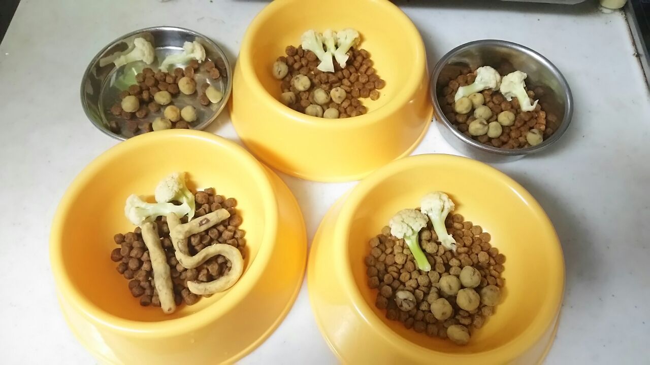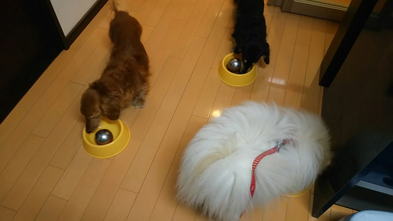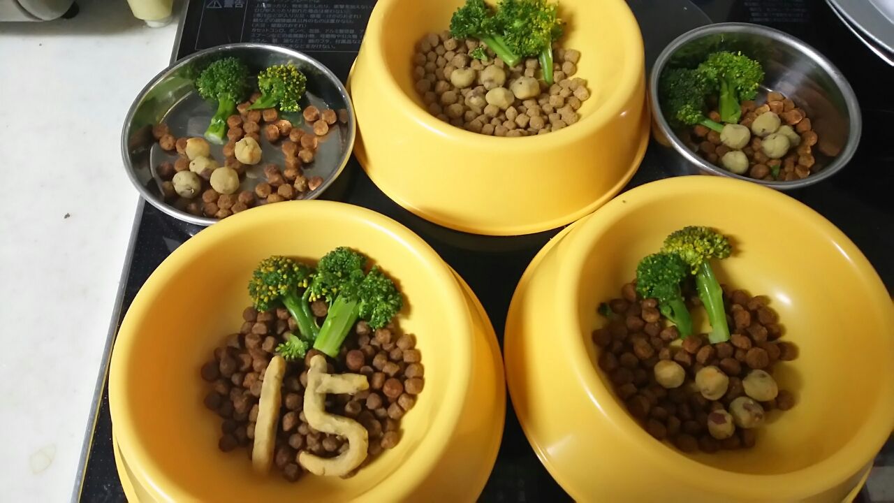 今朝 みんなでお祝い食を頂いてる時(ドリちゃんだけクッキーが数字型 他の子は丸クッキー ちなみにドリちゃん食から時計廻りに むぎ いち君 ティンク ぽん太郎のお皿 中身少しずつ違います・・・) 主人がボソリつぶやいてた