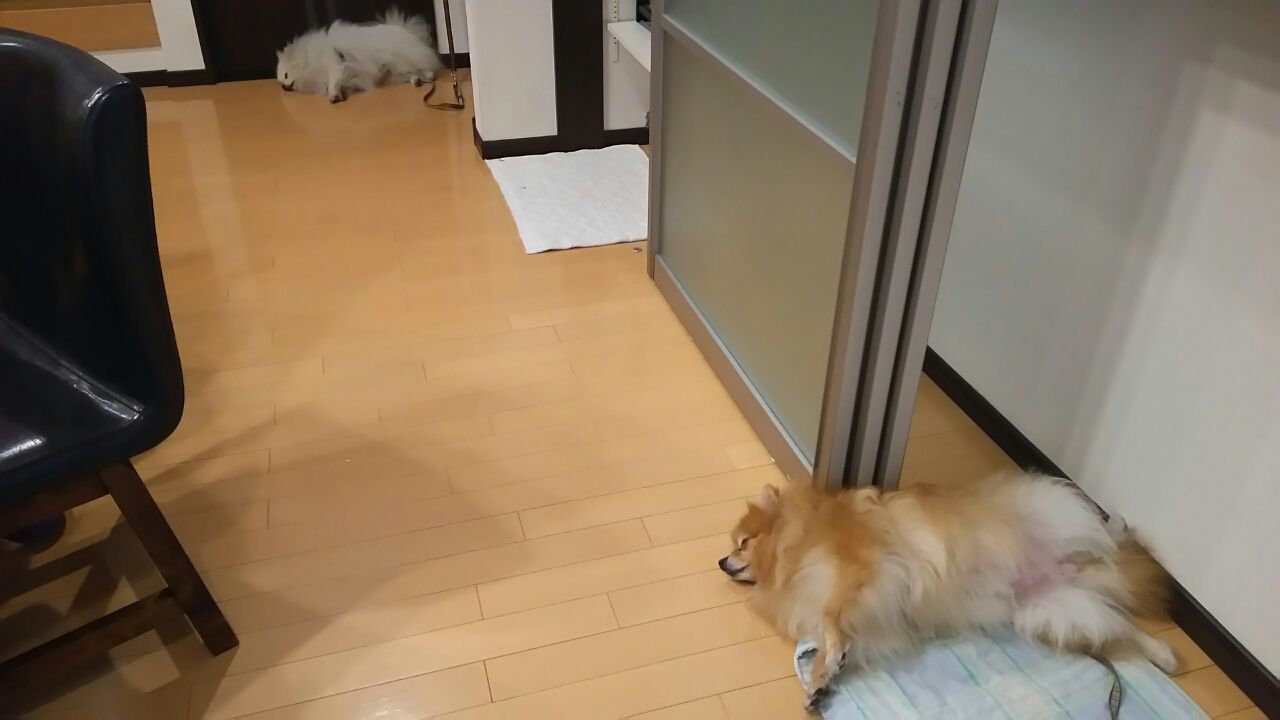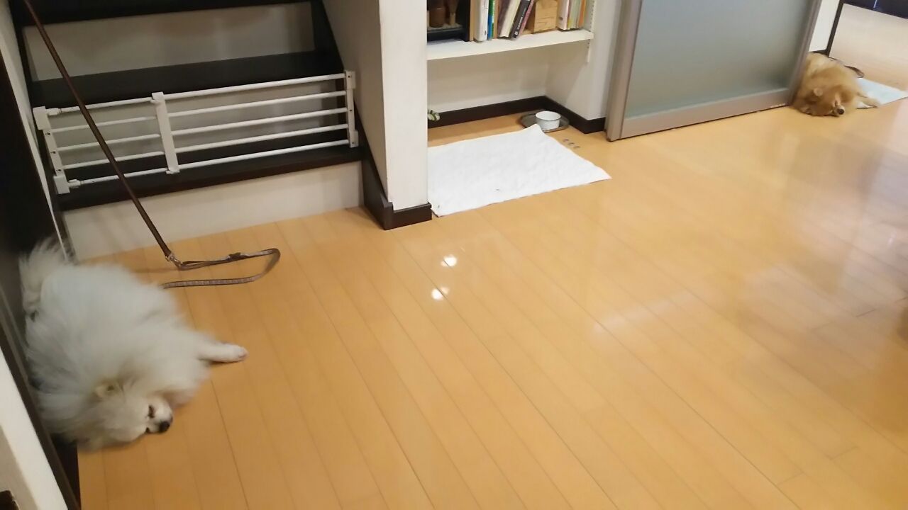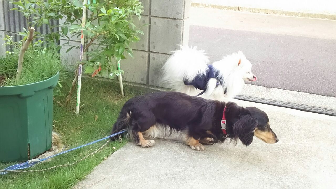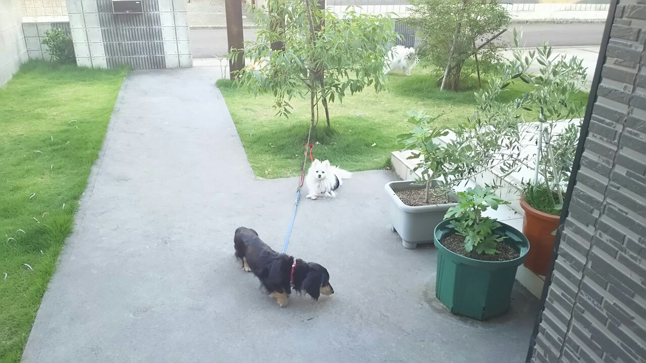 そして こちら車庫の下もそこそこ快適? それなりに楽しんでる2匹が居ますねぇ ともかく 日々こんな感じ お散歩前にもお外の空気満喫の皆様方ですが(ええ マイナス1=いち君 はあんまり参加しませんけど・・・)