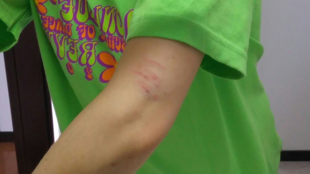 右肘の少し上辺り・・・(とても自撮りしづらいなぁ・・・ そして 痛いよぉ~!!だよ ここ)
