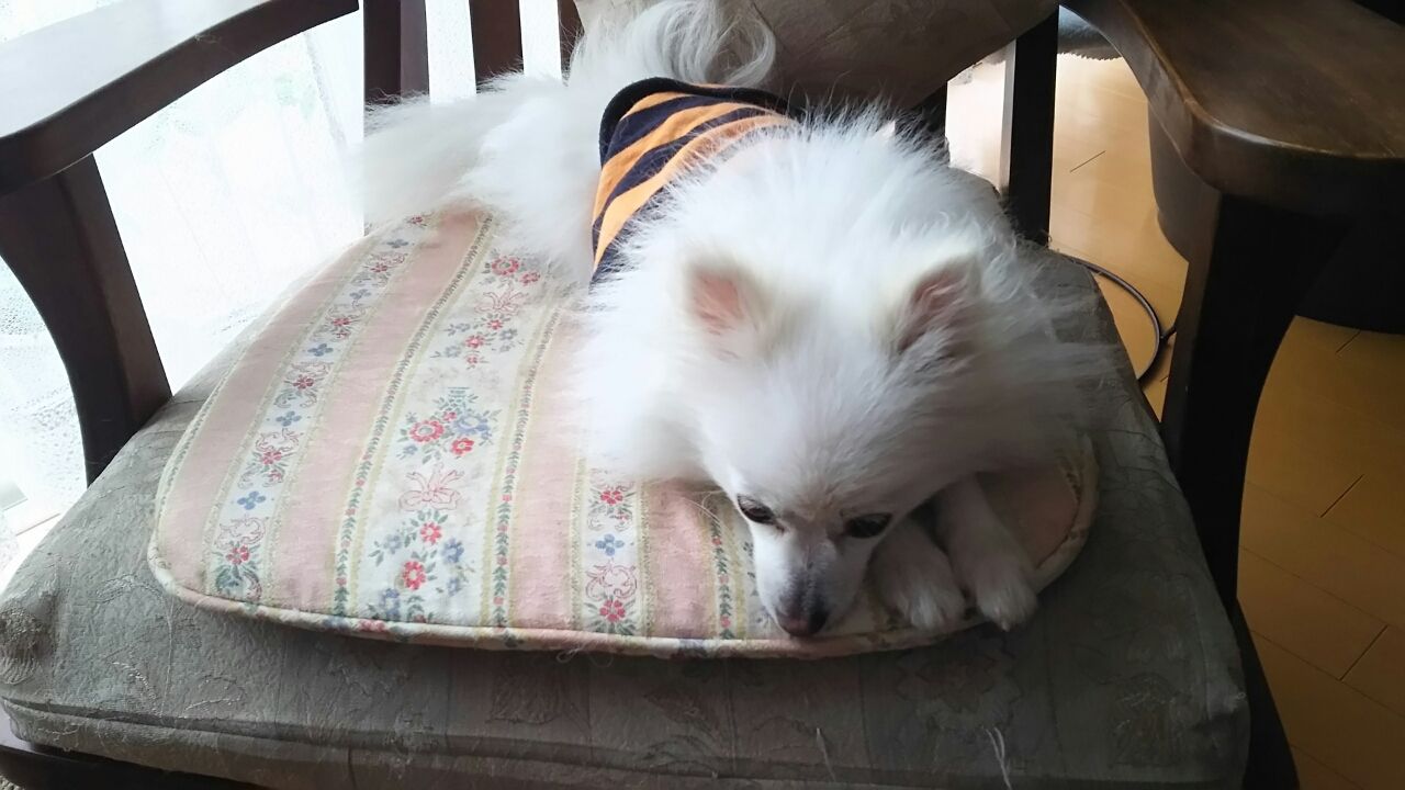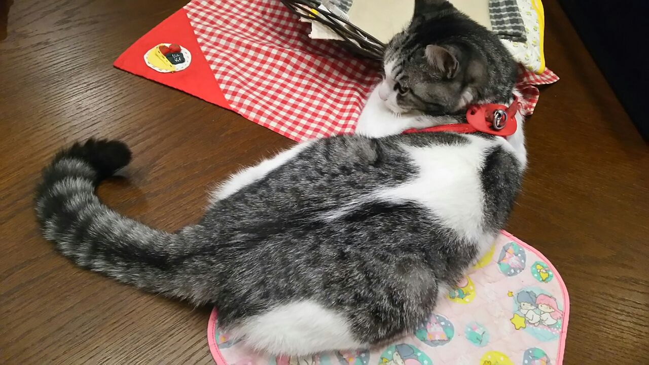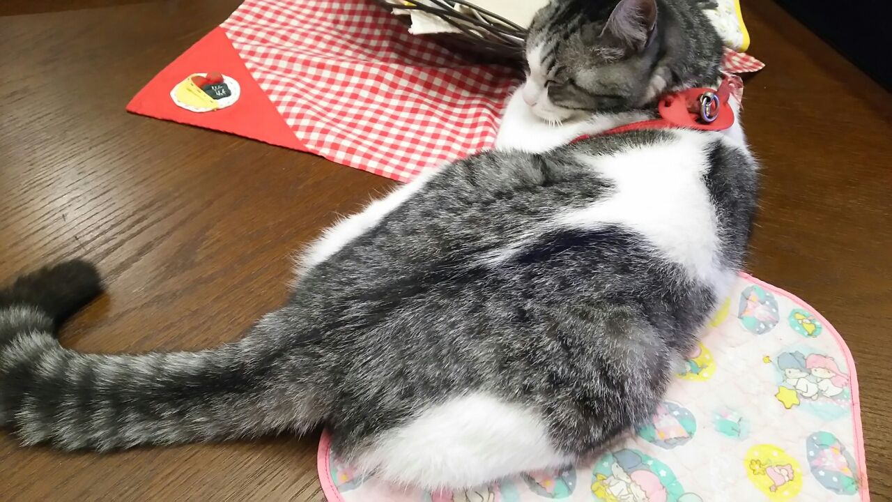 夢ちゃんのお尻が どっかと載ってるのは私のランチョンマットの上だよね