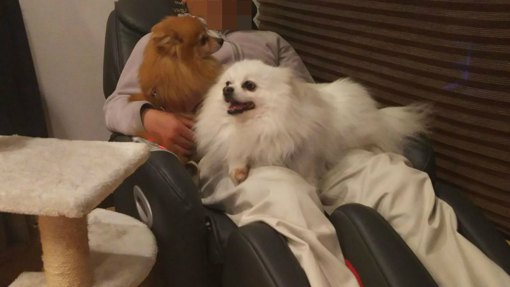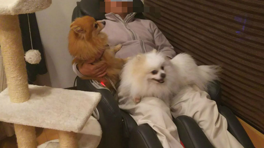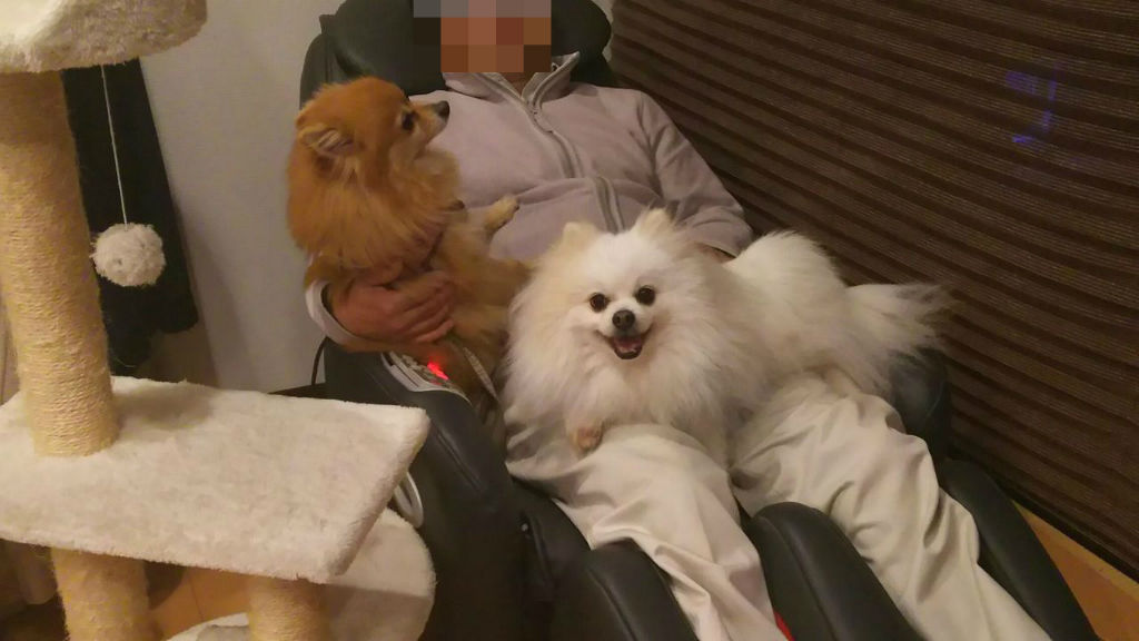 なのに悲しいかなその日 そのポメちゃん(Aちゃん)がピッと飛ばしたオシッコがむぎちゃんの頭上にまともにヒット(時々オシッコ攻撃にあうんだけど いつもは上手にかわせてたのになぁ・・・ つまり災難) 頭がオシッコで染まっちゃう事件が勃発 ![]()