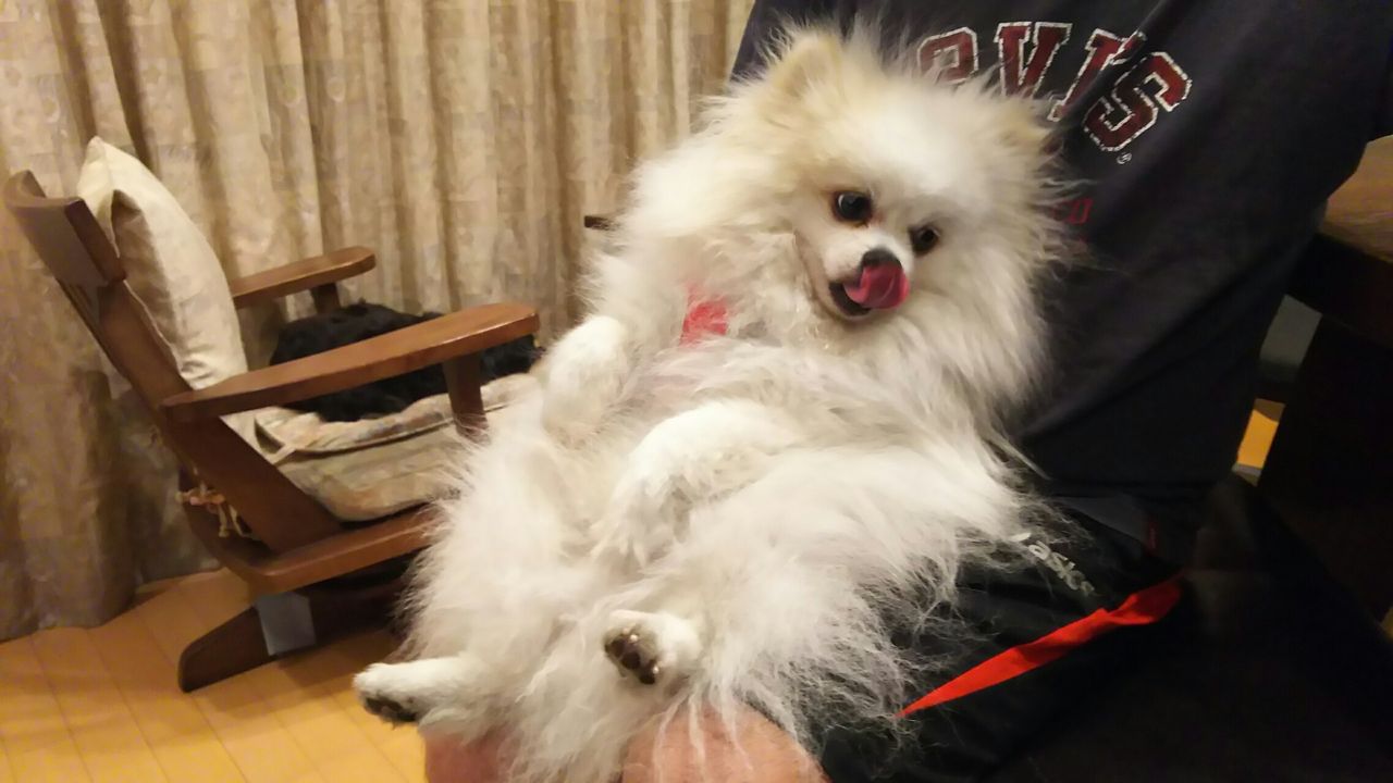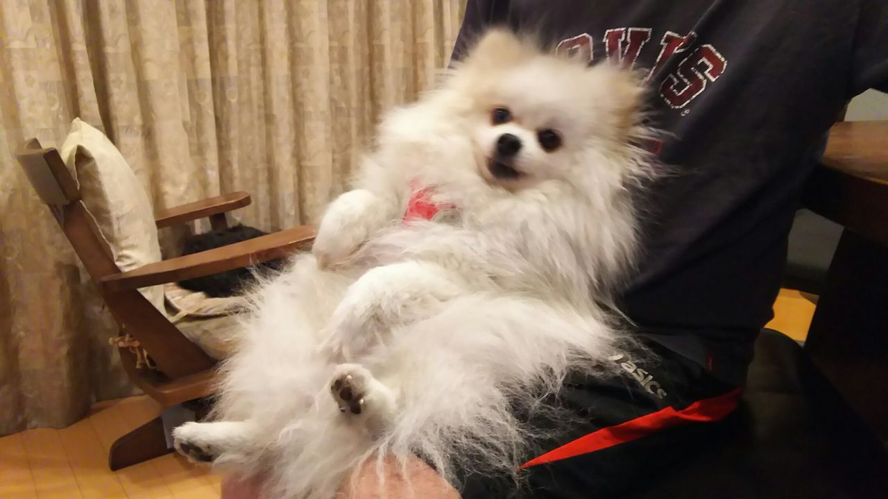 でもね 少しずつ人間好きかも・・・っ子へと成長し 気付けば今や押しも押されもしない 立派な甘えん坊犬!!朝から だっこぉ~!! と甘えてきますあくびなんかしちゃって そりゃぁもう弛緩しきってます抱っこすると前足を突っ張ってたあの頃が本当に嘘の様・・・