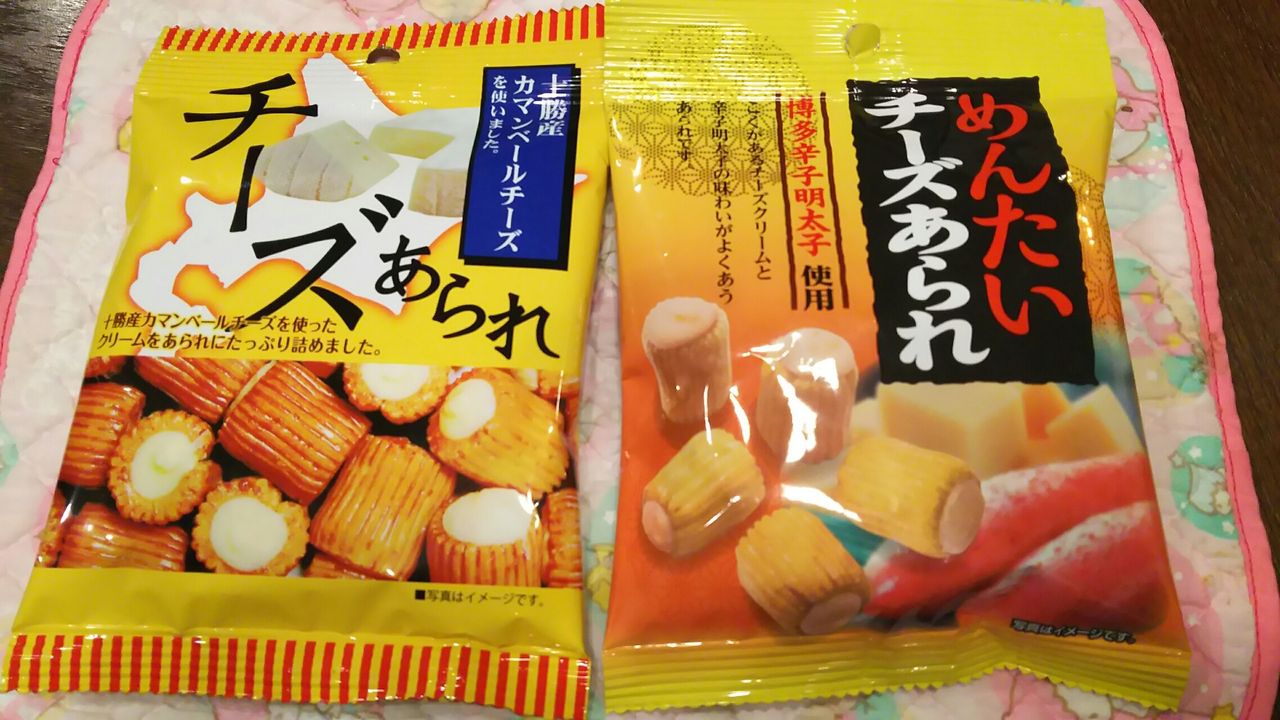 左:チーズあられは意外と好きで たまに買うんだけど 右:めんたいチーズあられ なんてのがあっただなんてちっとも知らなかったです(不覚)