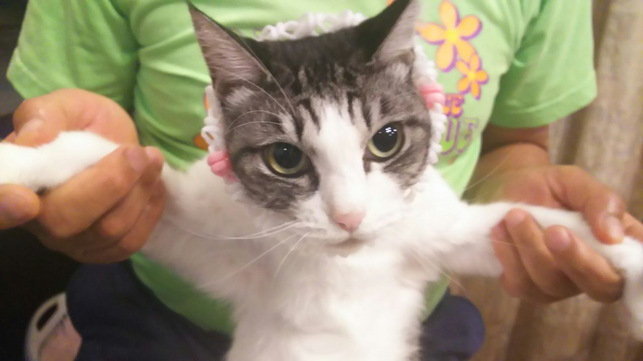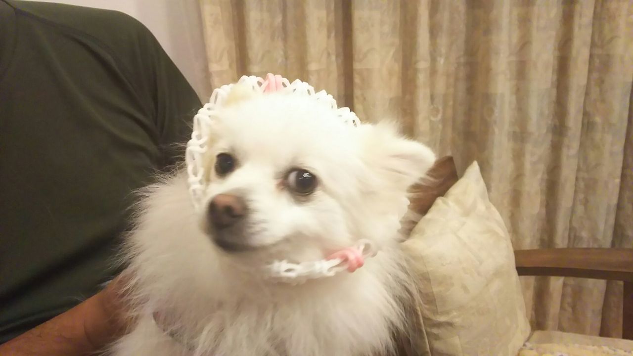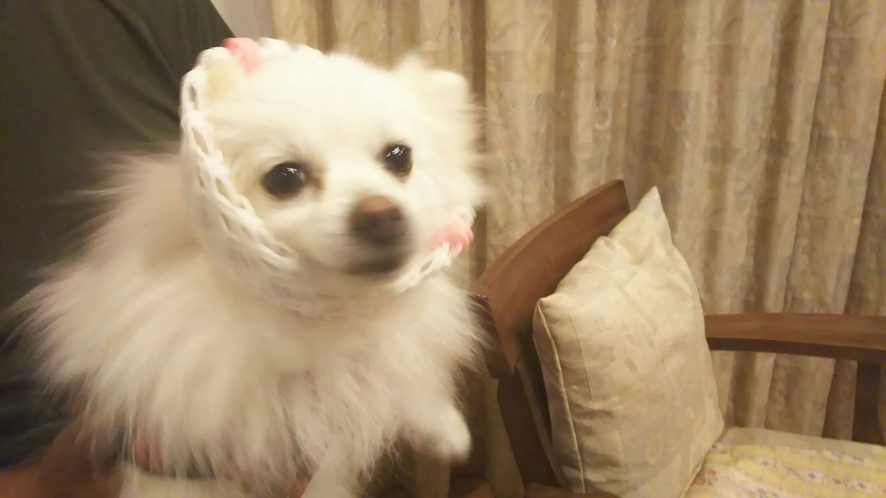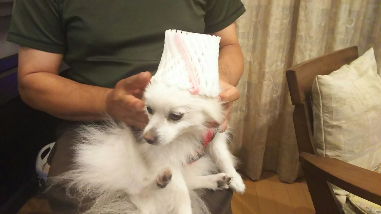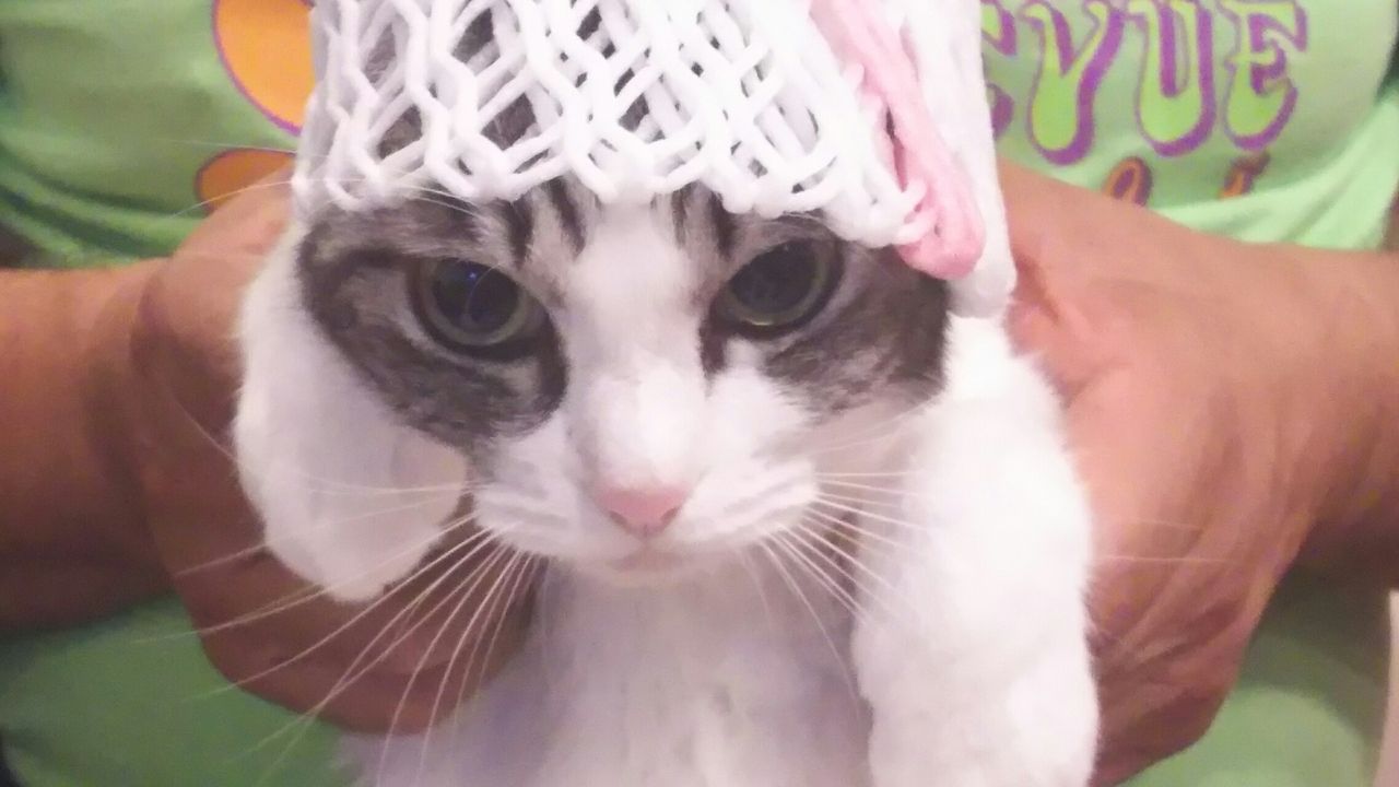我が家にももうひとり(1匹)女の子が居ますので その方にもネットを被っていただきました・・・