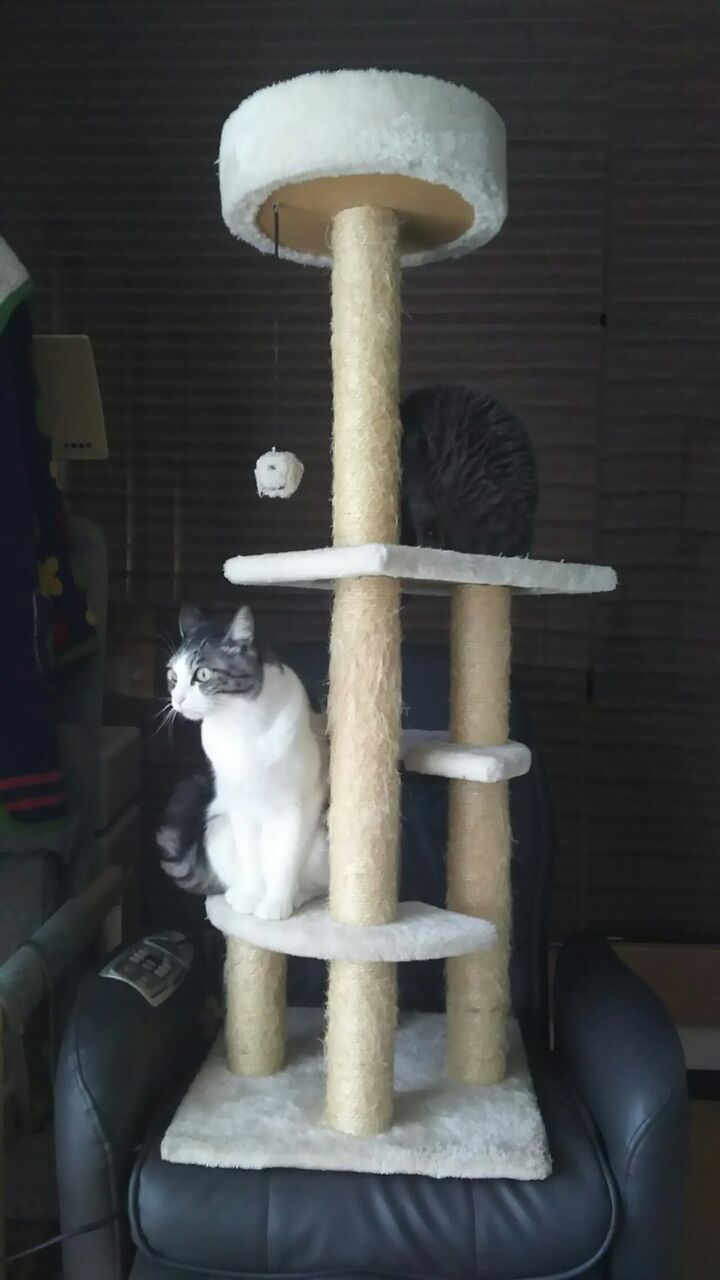 こんな不安定なトコ(マッサージチェアの上)に普通置かないでしょ って所に乗っかってる我が家のキャットタワー