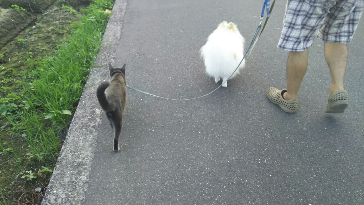 毎日 元気よくポメちゃんずと一緒にお散歩に出掛けるギイ