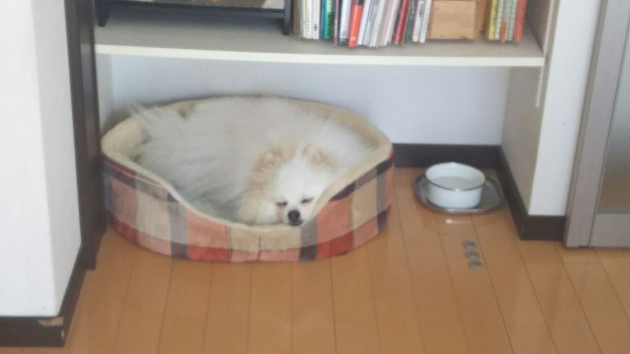 ぽんちゃんベッドで可愛くまどろむぽん太郎君になりました