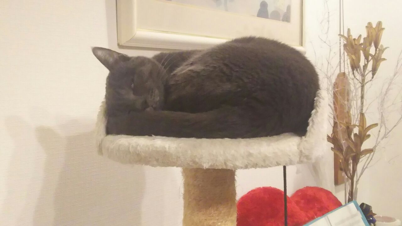 昨晩はギイ 尻尾を身体にクルン どうだこれで文句ないだろう! って恰好で寝てました