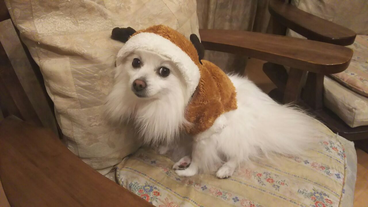 昨日 三角帽子をかぶったむぎちゃん トナカイの洋服を着たむぎちゃん・・・