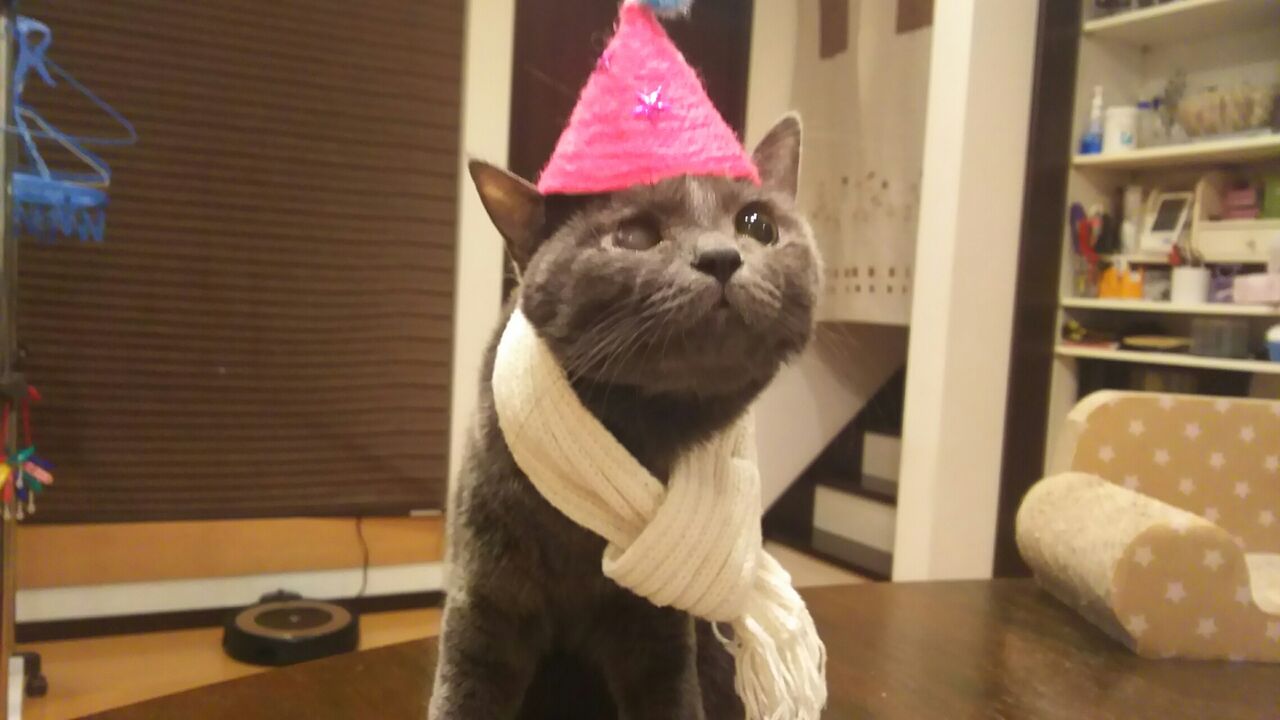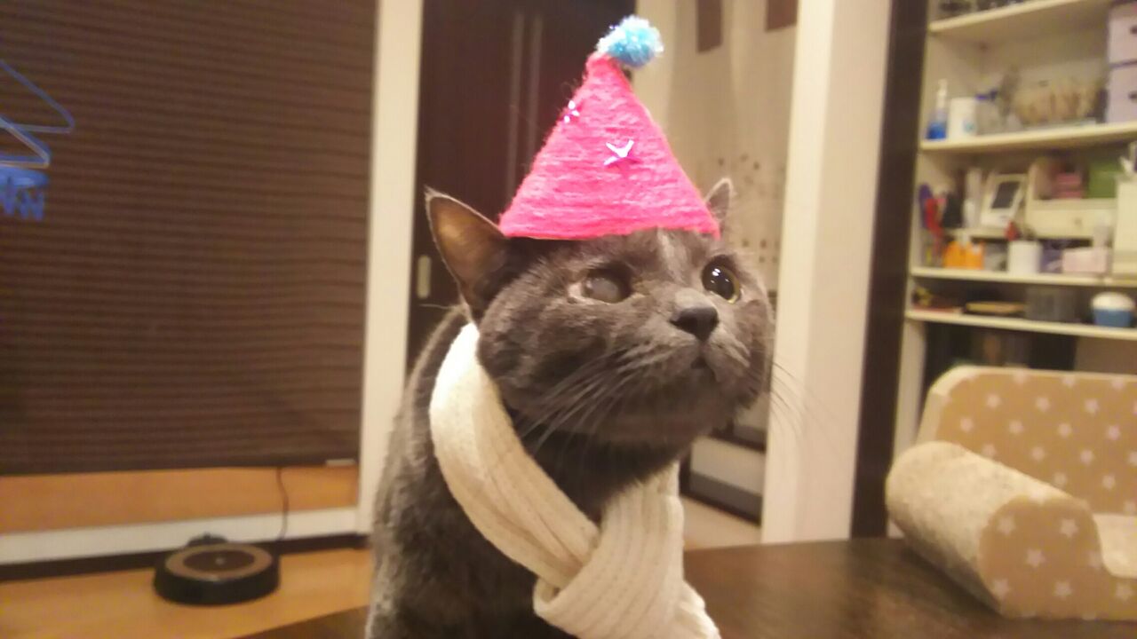 はい 一瞬三角帽子をかぶってくれましたが 本当に本当に一瞬だけ