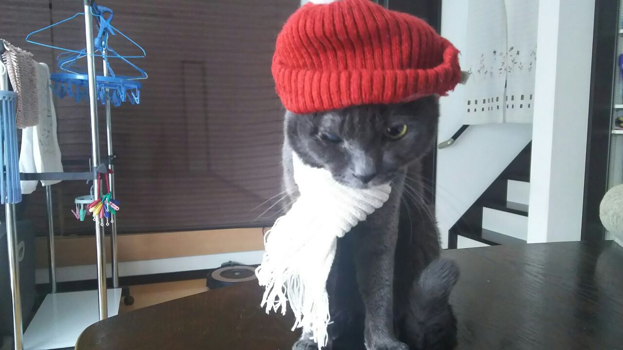 いやぁギイくん 可愛いマフラーと三角帽子が こんなにも似合わない子だったとは