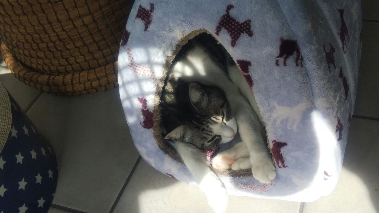 むぎちゃんの口元に 唾液で濡れたギイの毛がくっついてました