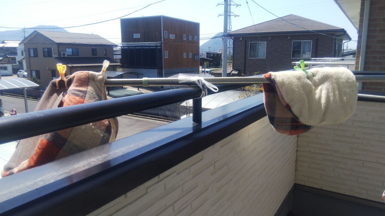 はい今 ベランダに毛布を干してますぅ(今日中にはクローゼットに片付けます)