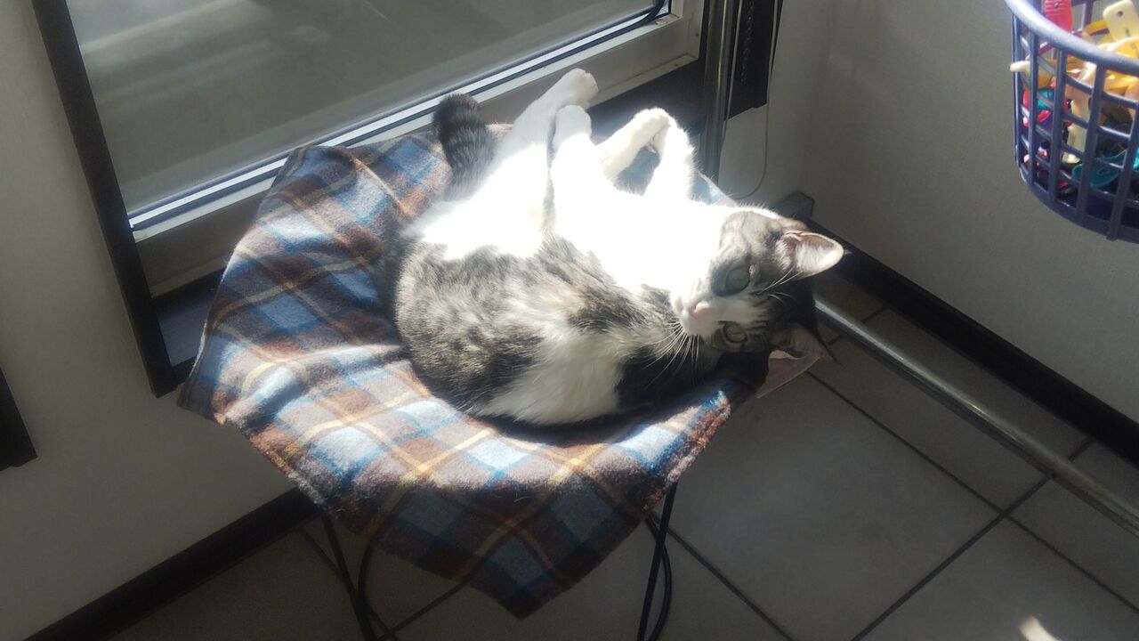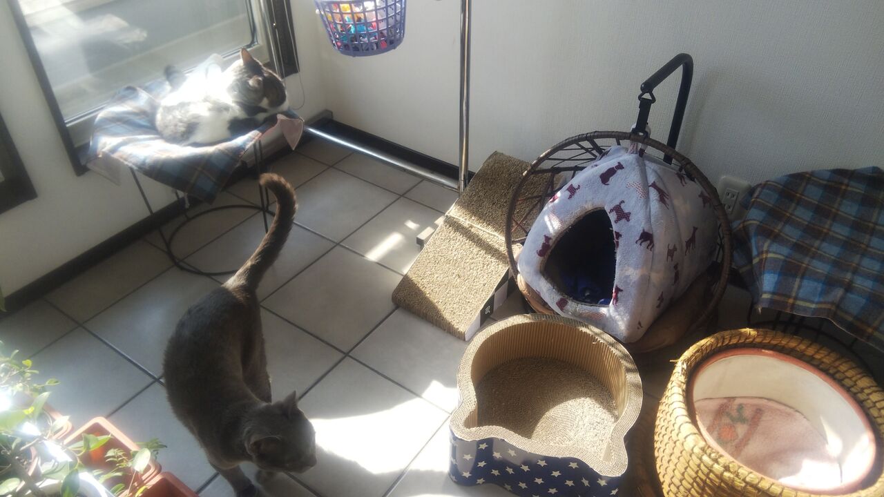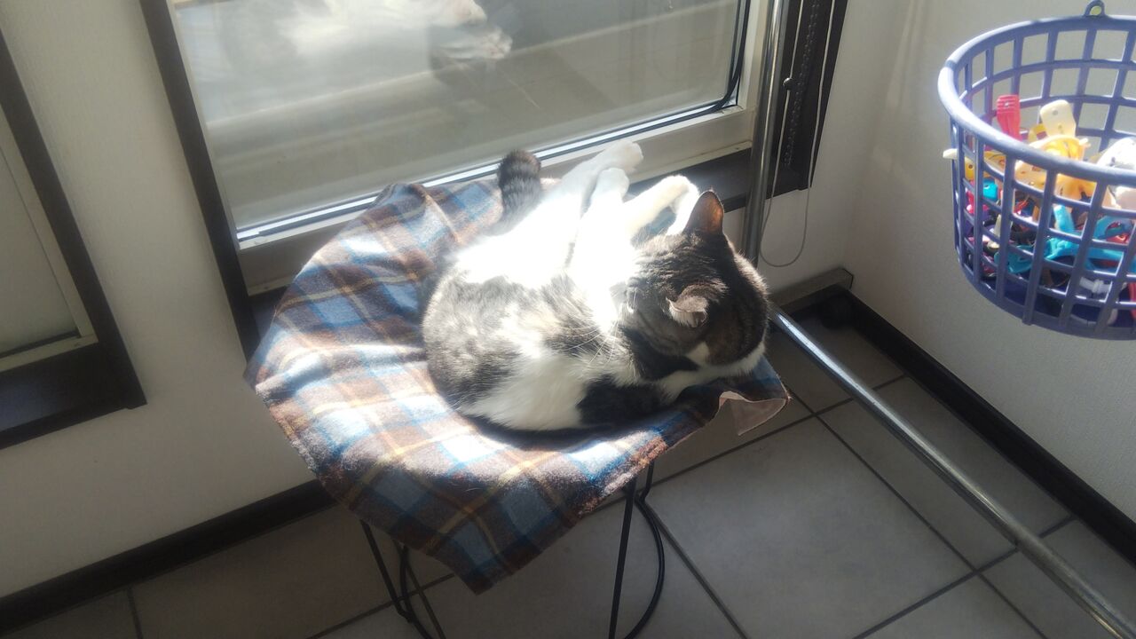 そして昨日はこんな感じ 窓辺のハンモックベッドでお寛ぎでありました・・・
