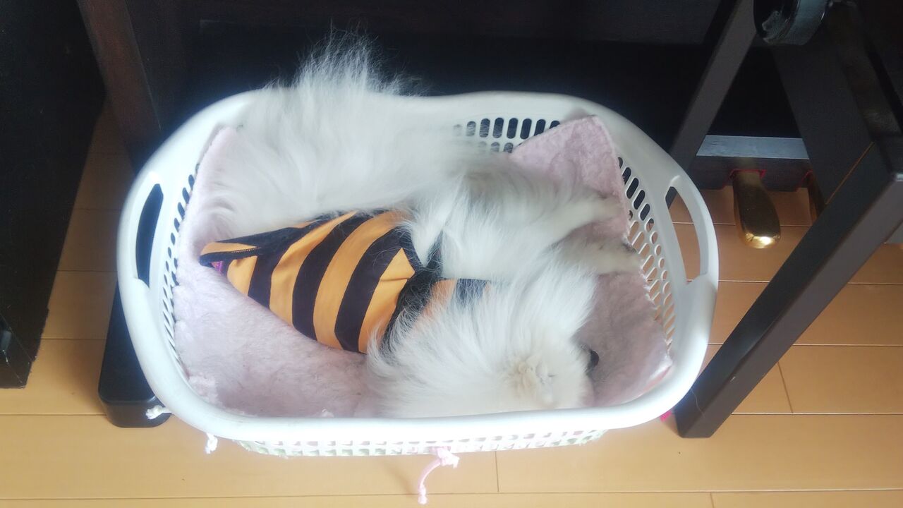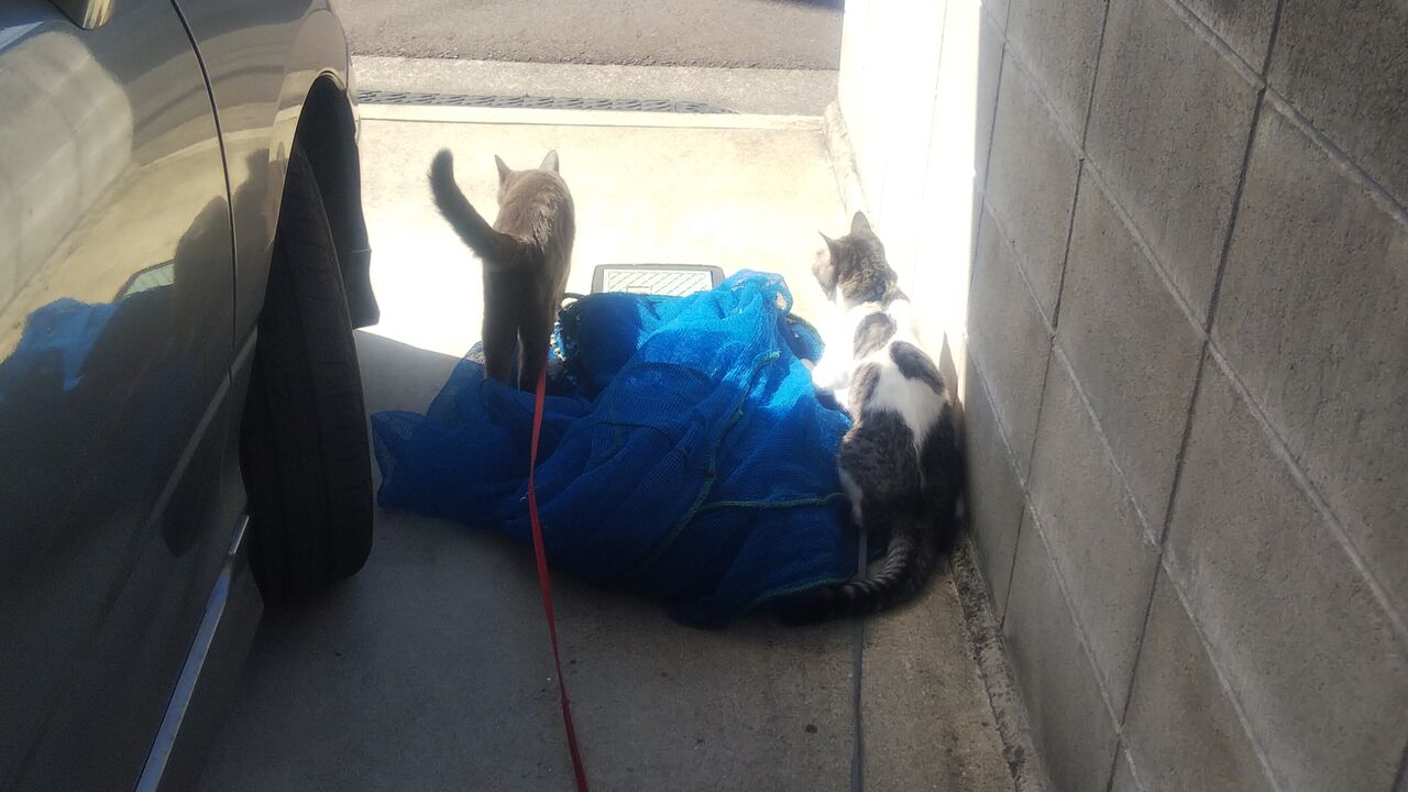 と 今度はここでまたまたまどろむふたり・・・(今月は可燃ゴミ当番なのでネットを預かってます)
