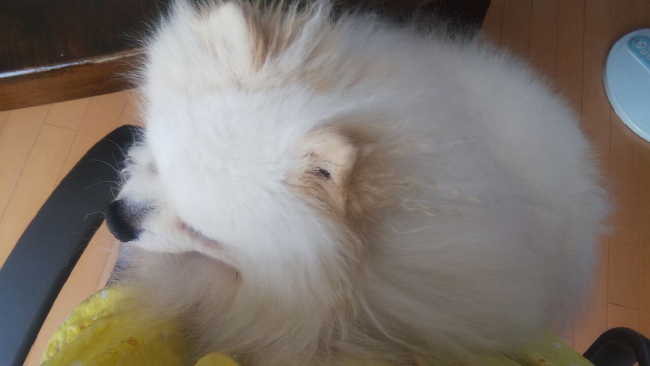 と 最初は仲良くここで2匹ともまどろんでましたのに 飽きてきたギイが歩きだし まだまだここで居たい夢との間で綱引きが始まりました・・・