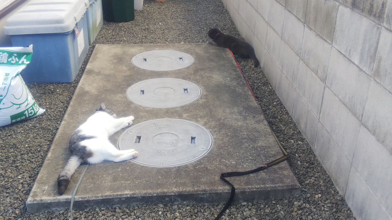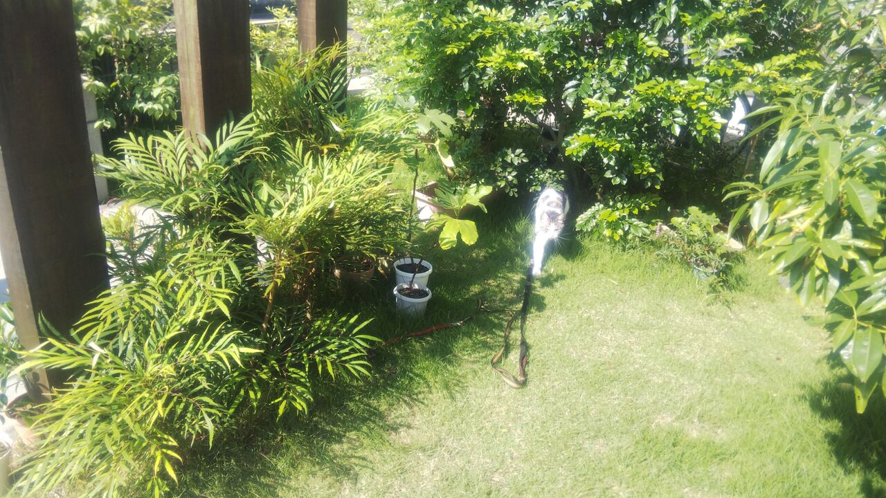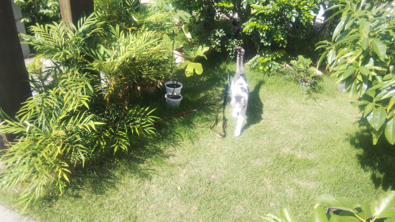 毎日朝から30℃超え 超暑いんですからね もう朝のお外散策はダメです 明日からは出しませんよぉ!!
