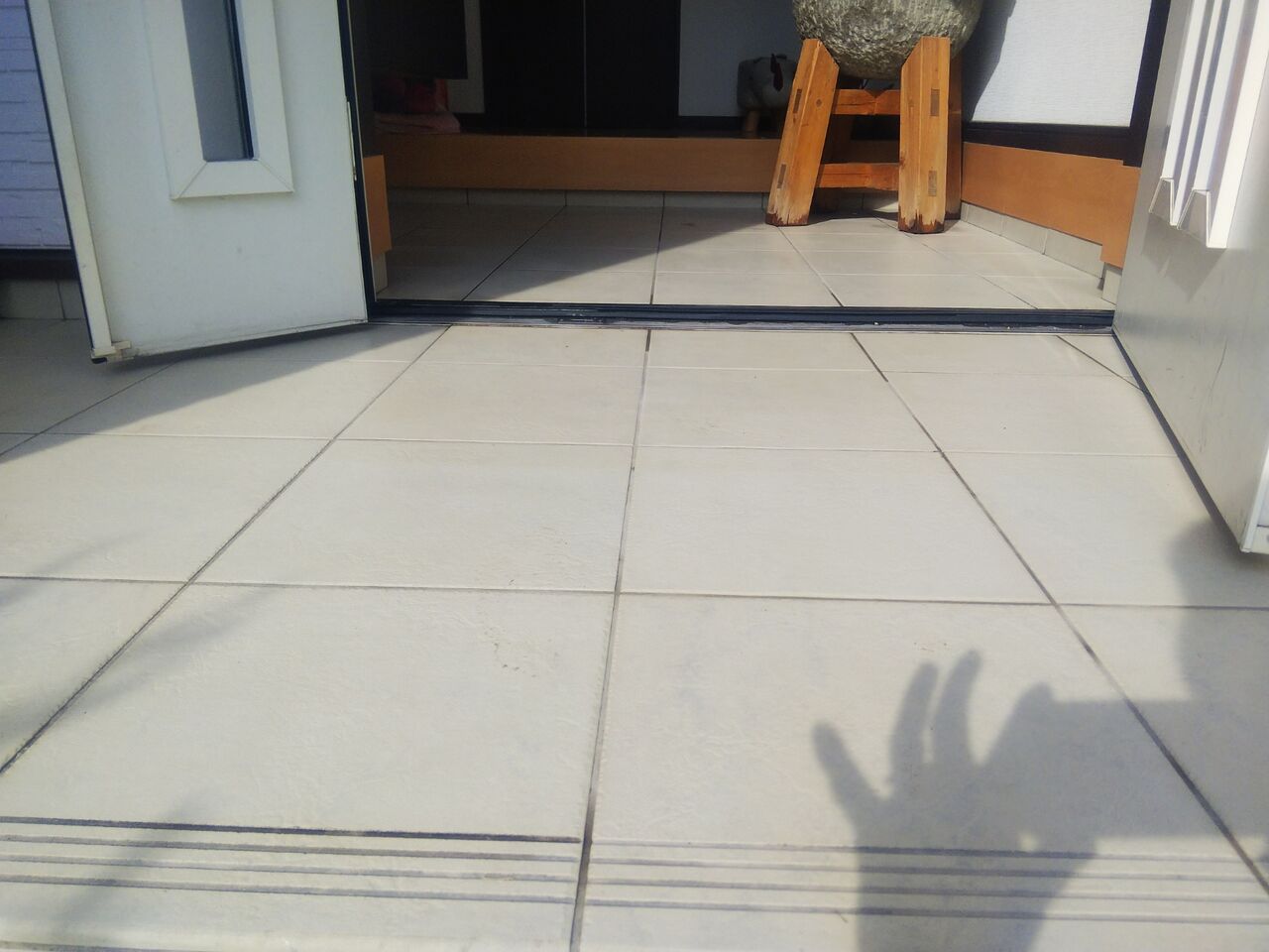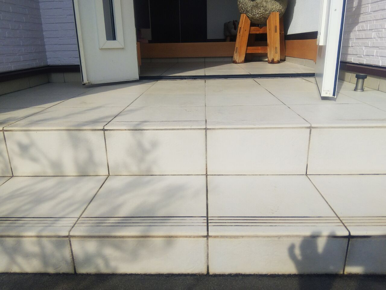 玄関タイルも磨いて白しろ