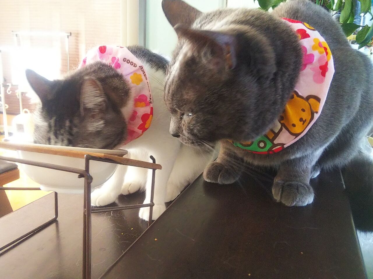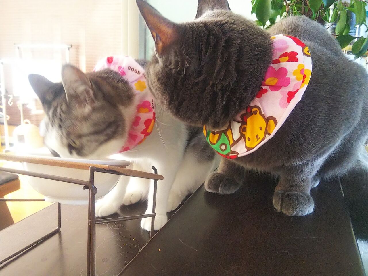 今は2匹さん お揃いピンクのキティちゃんを付けてます