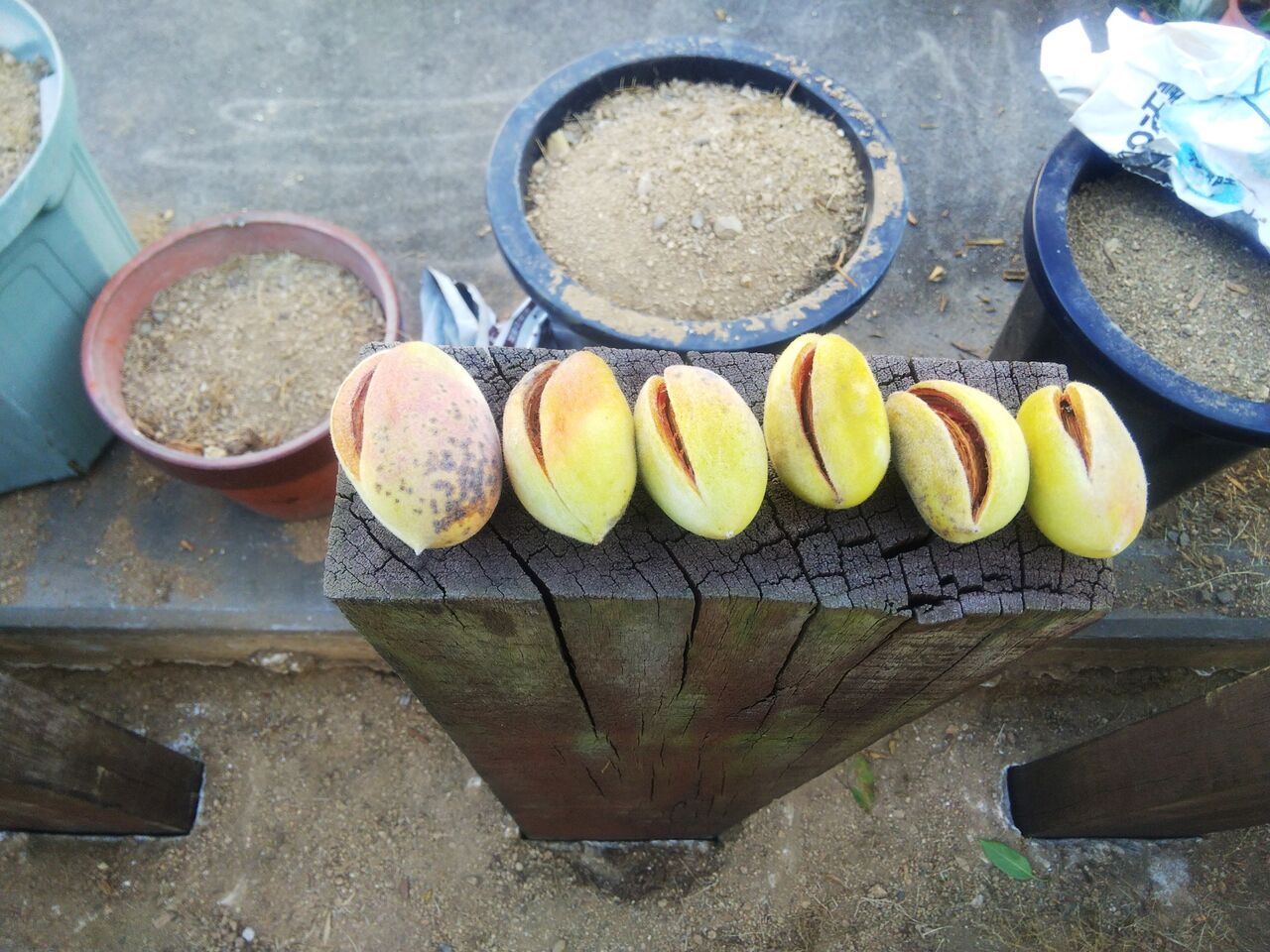 もちろん ちゃかちゃかっとこの硬い殻を金槌で割ってですね 中のアーモンドの種を取り出せば片付く事なんです・・・