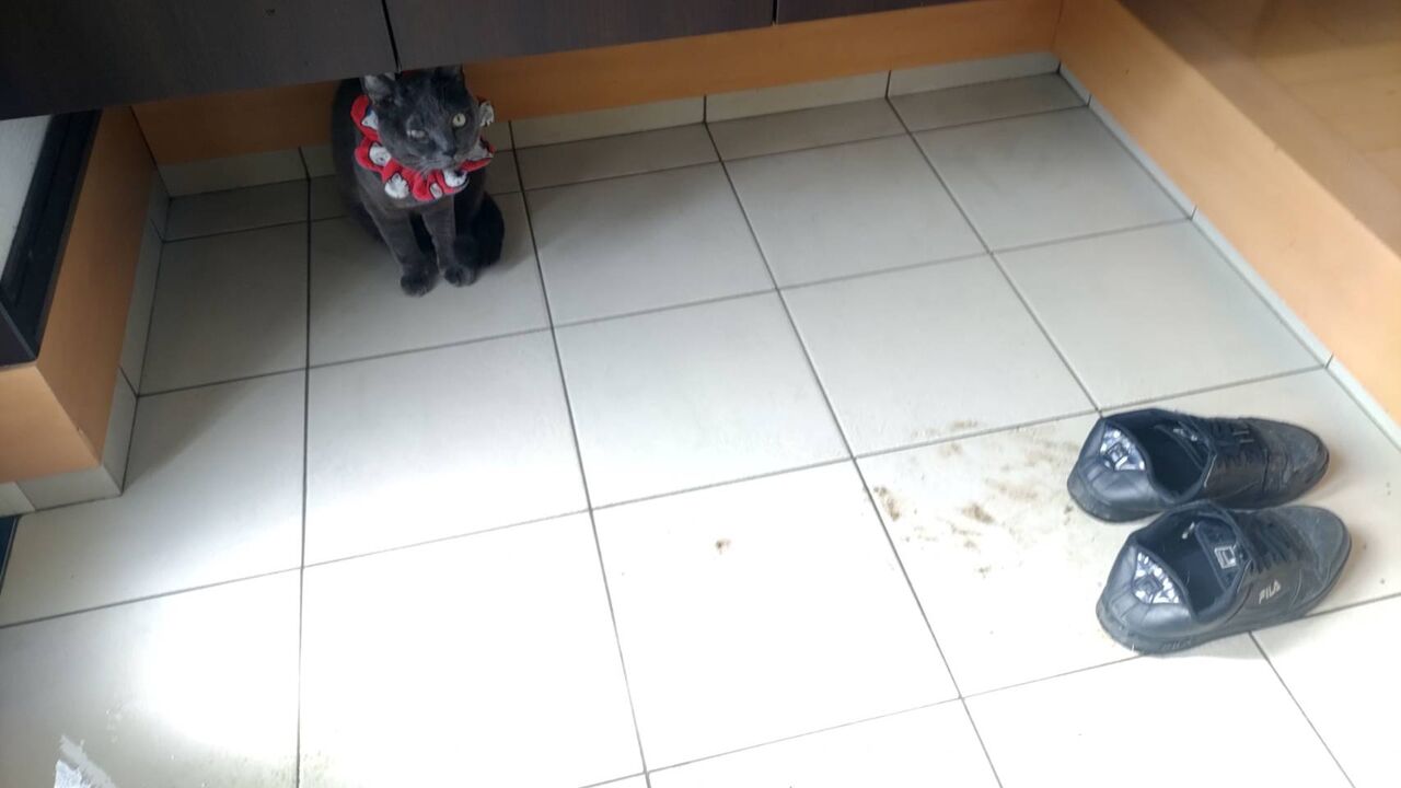 ホント 猫ってしなやかに降りて来る生物なんじゃぁ・・・ との思い 見事にうち砕いてくれるギイです