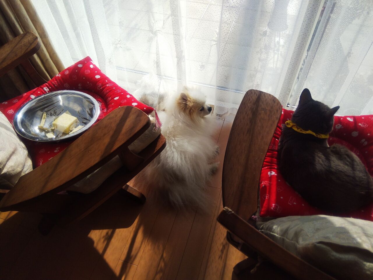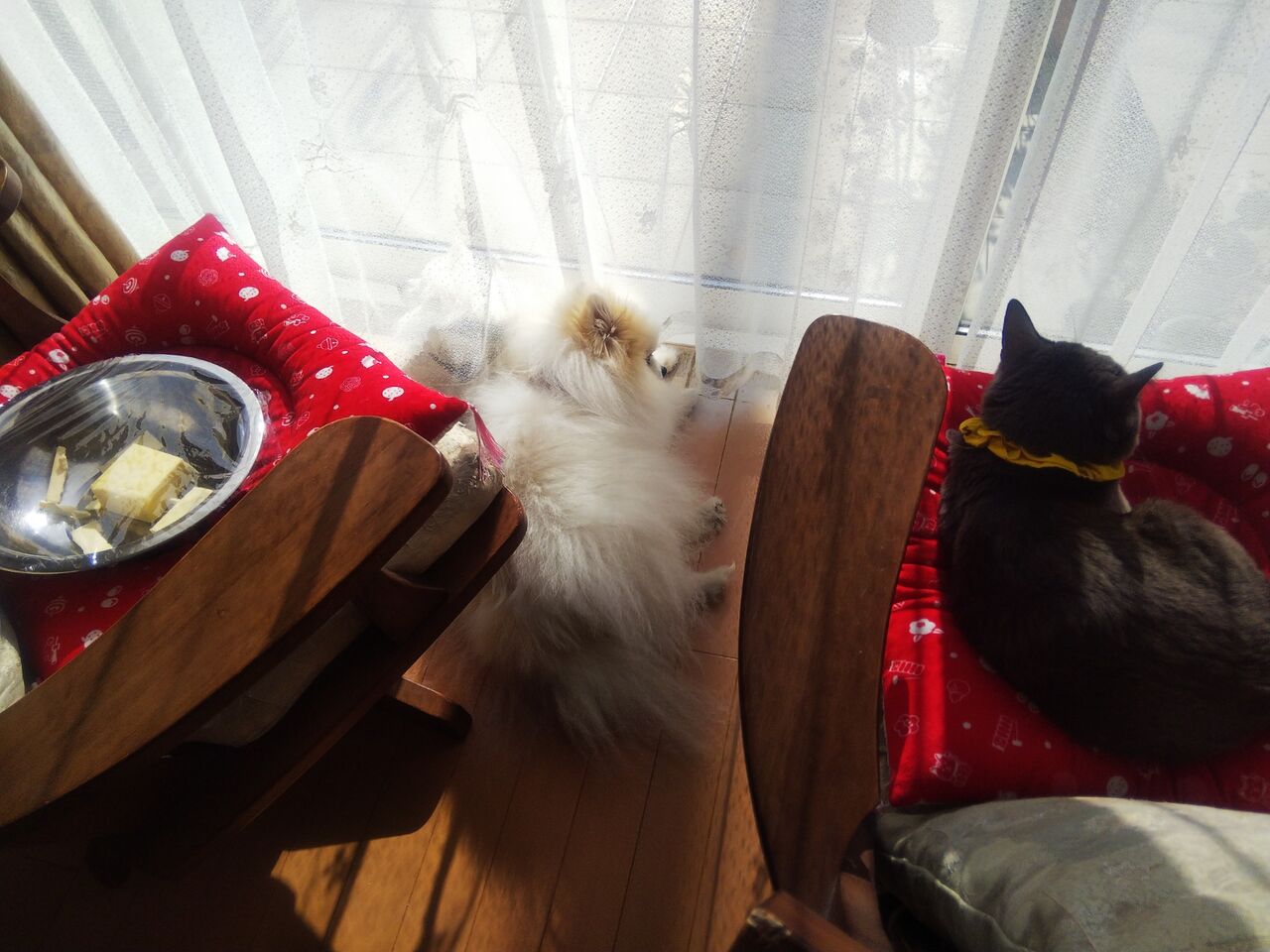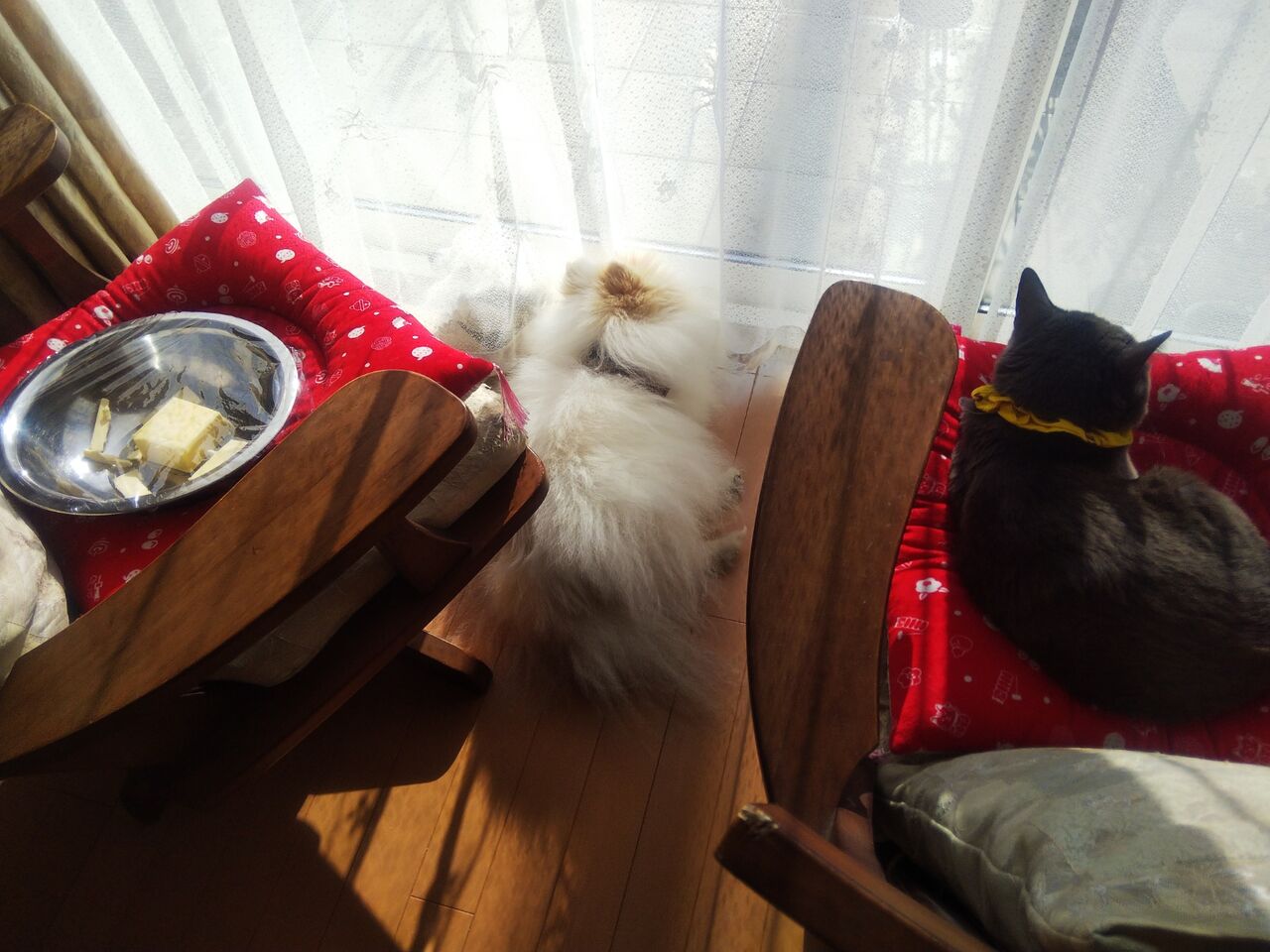 あっ 回転椅子左側ではバターも日光浴中