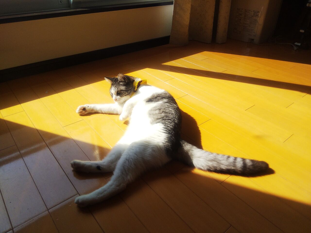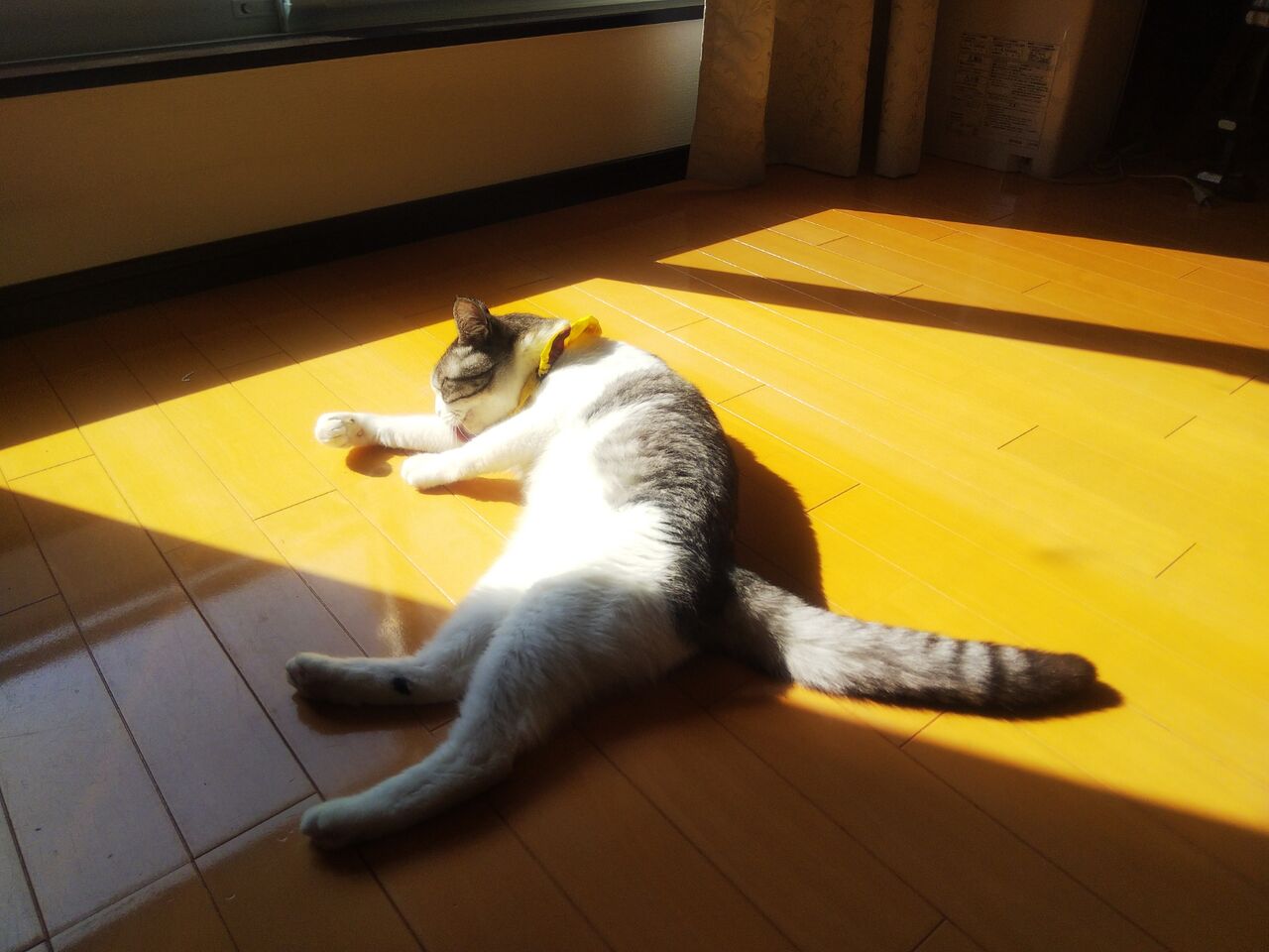 ともかく 普段はこんなにも安心しきって転がってるぽん太郎ですが