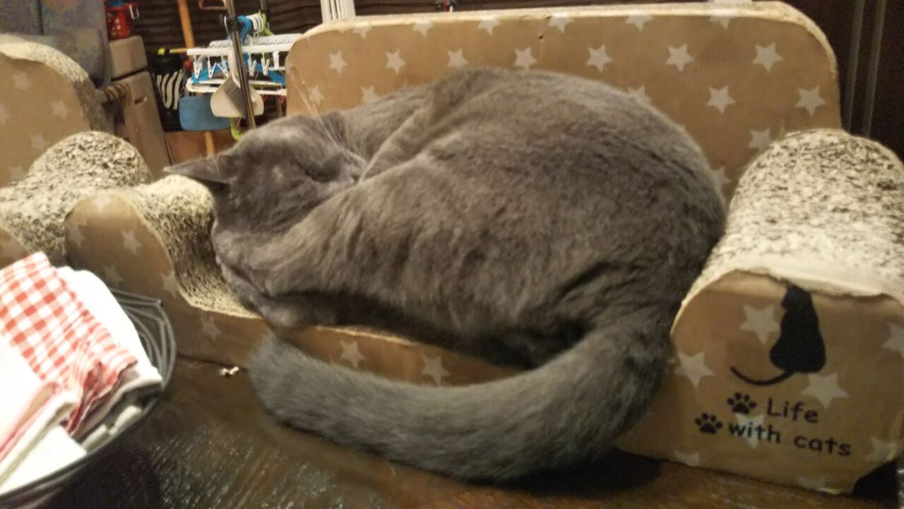ついでに猫の爪砥ぎ段ボールソファも一つ購入・・・(猫爪砥ぎ 今あるのはどれもボロボロ けどすべて買い替える男気はなし 一番ボロいのから一つずつ交換で許して)