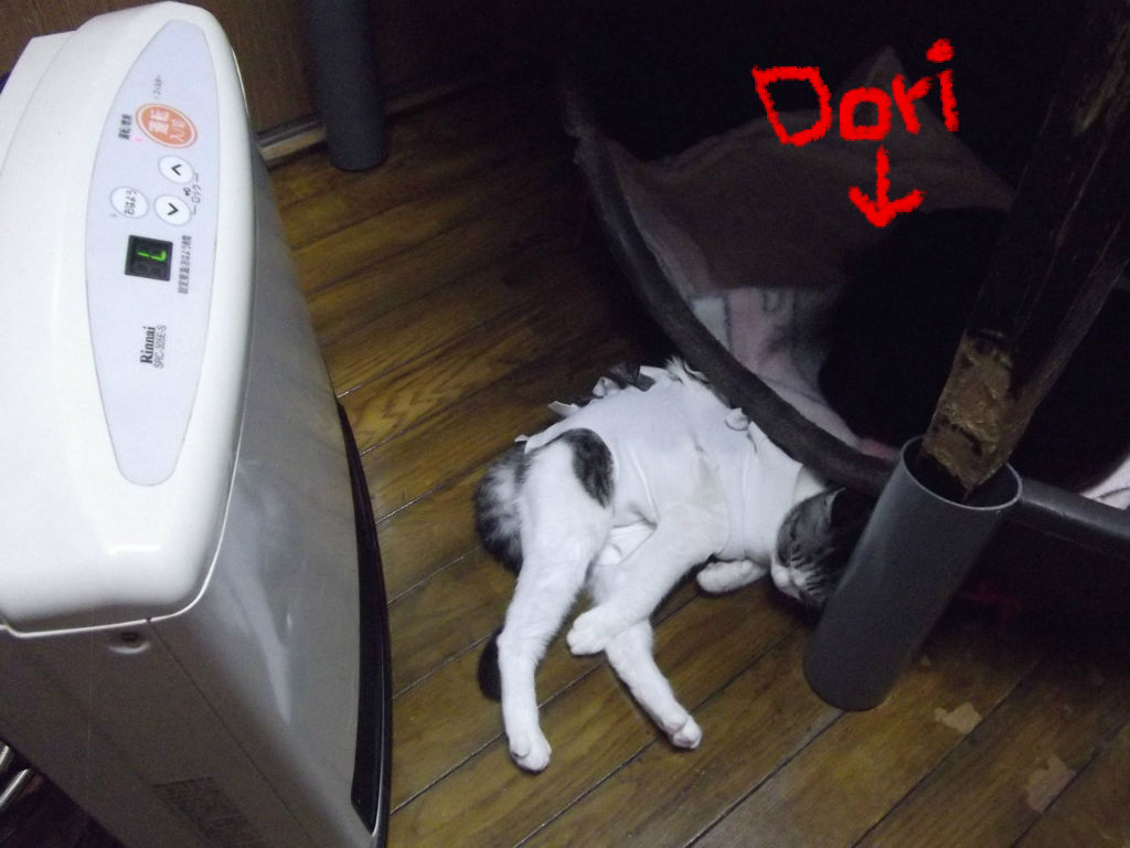 ストーブの まん前で 寛いでましたし