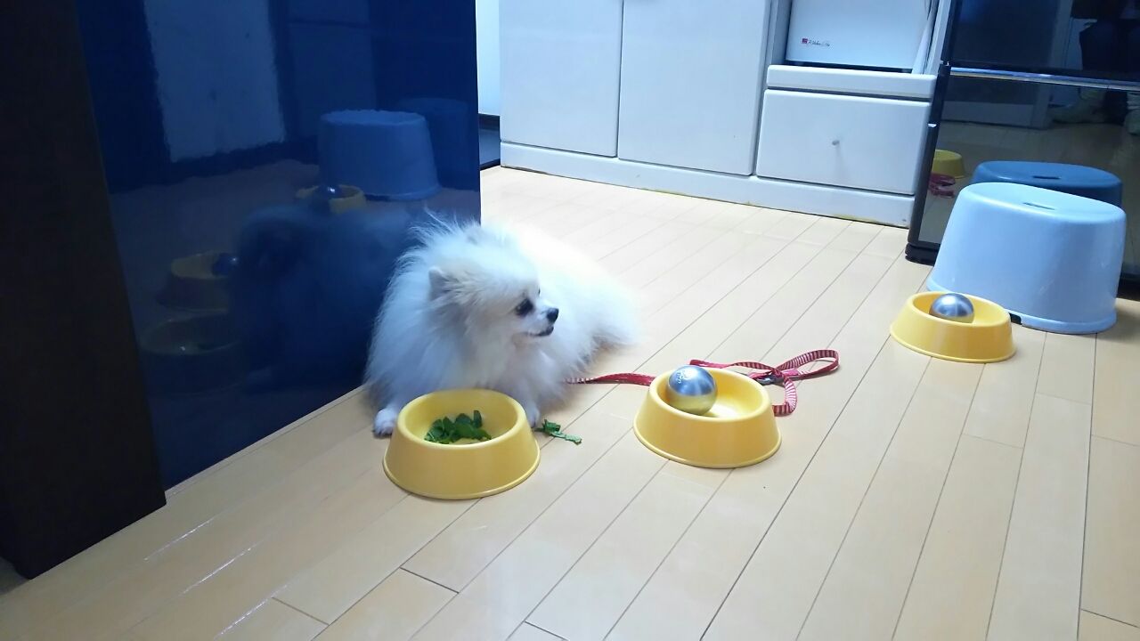 みんなはカリカリの上にお野菜をトッピングしてあげてると カリカリと一緒にアッという間にお野菜も食べてしまうんだけど ぽん太郎はゆっくりゆっくり・・・