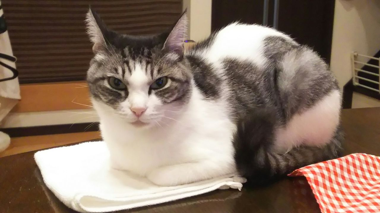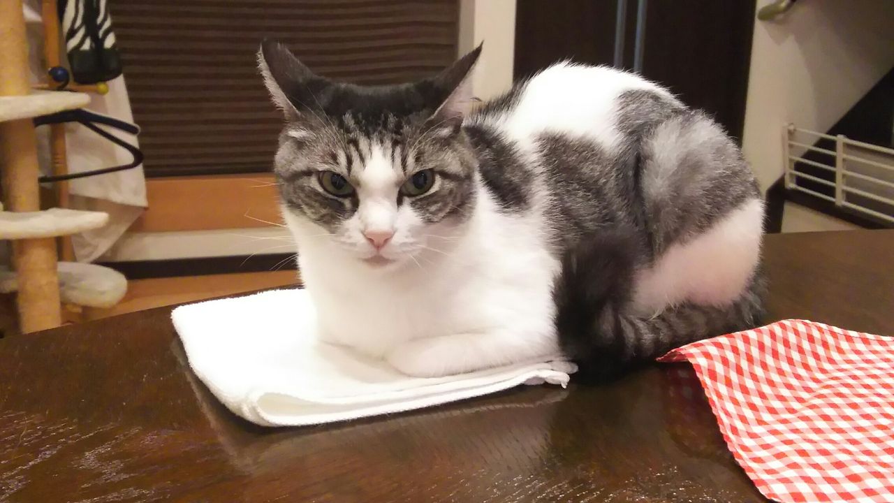 昨晩も ちょっと置いてたタオルハンカチの上で香箱座りの夢ちゃん