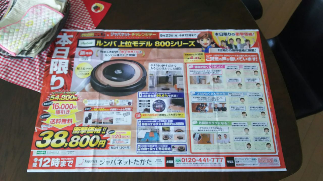 なんて 話をしながら ふとジャパネットたかたの広告を見てしまった・・・(だって めちゃめちゃ大きい広告用紙!!)