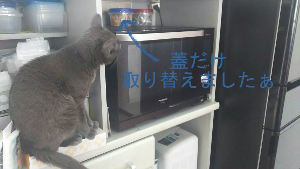とまれ 今度こそ・・・ との願いを込め 蓋を取り替え 電子レンジの上 しかも奥の方に置きました