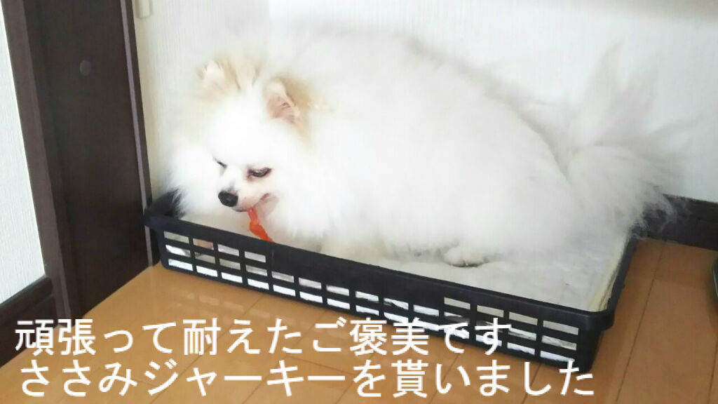 (偉いね 良く頑張りました シャンプーもドライヤーも咬みつく事なくクリア)