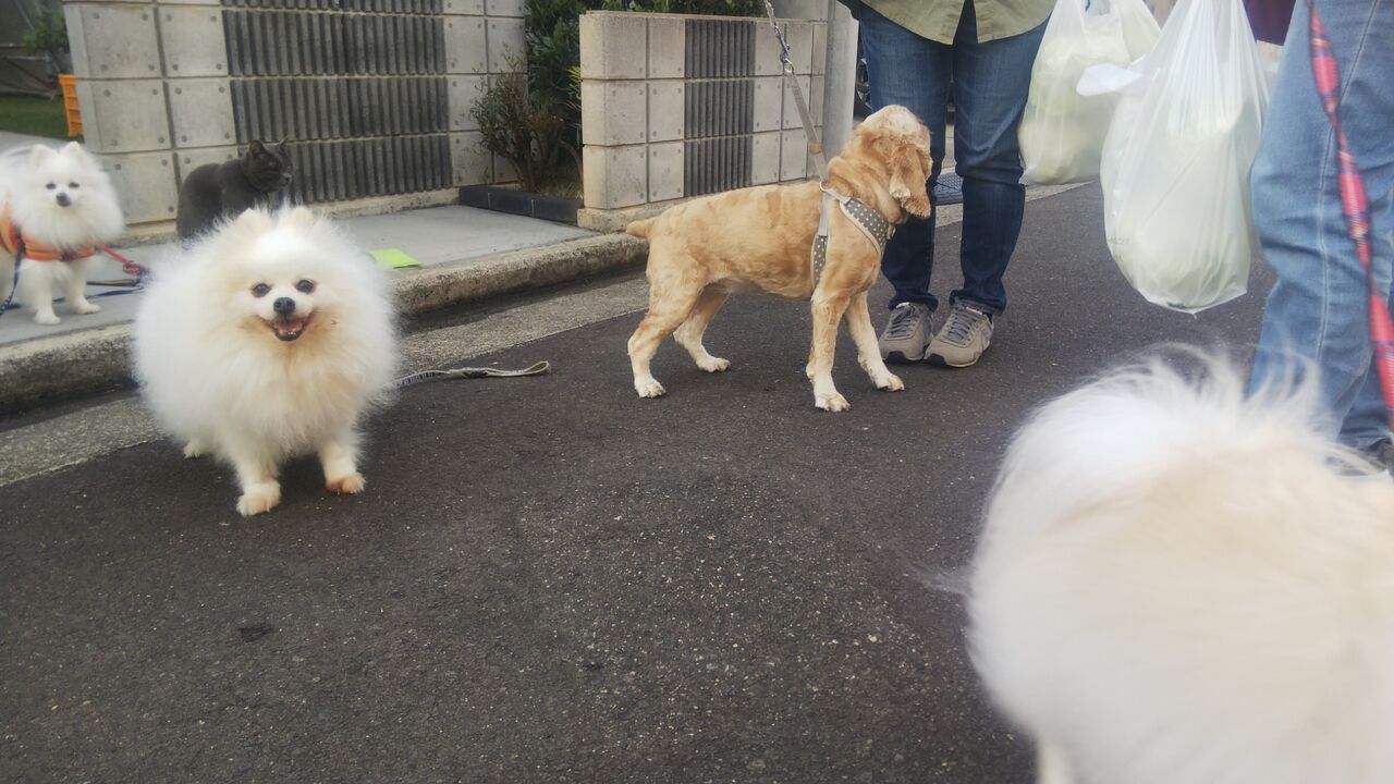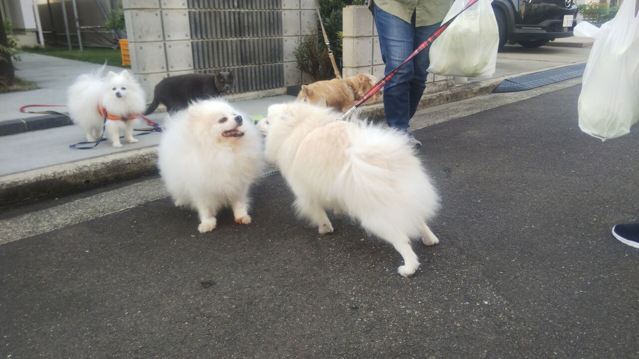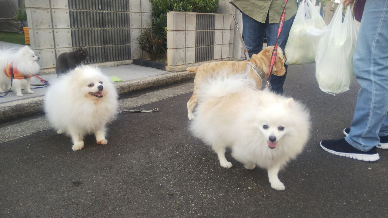 お散歩友達のわんこさんが2匹家の前まで来てくれたんです