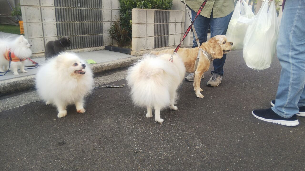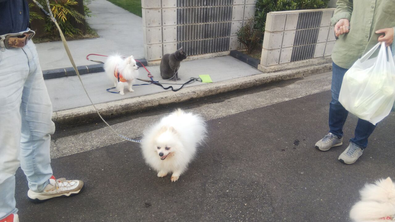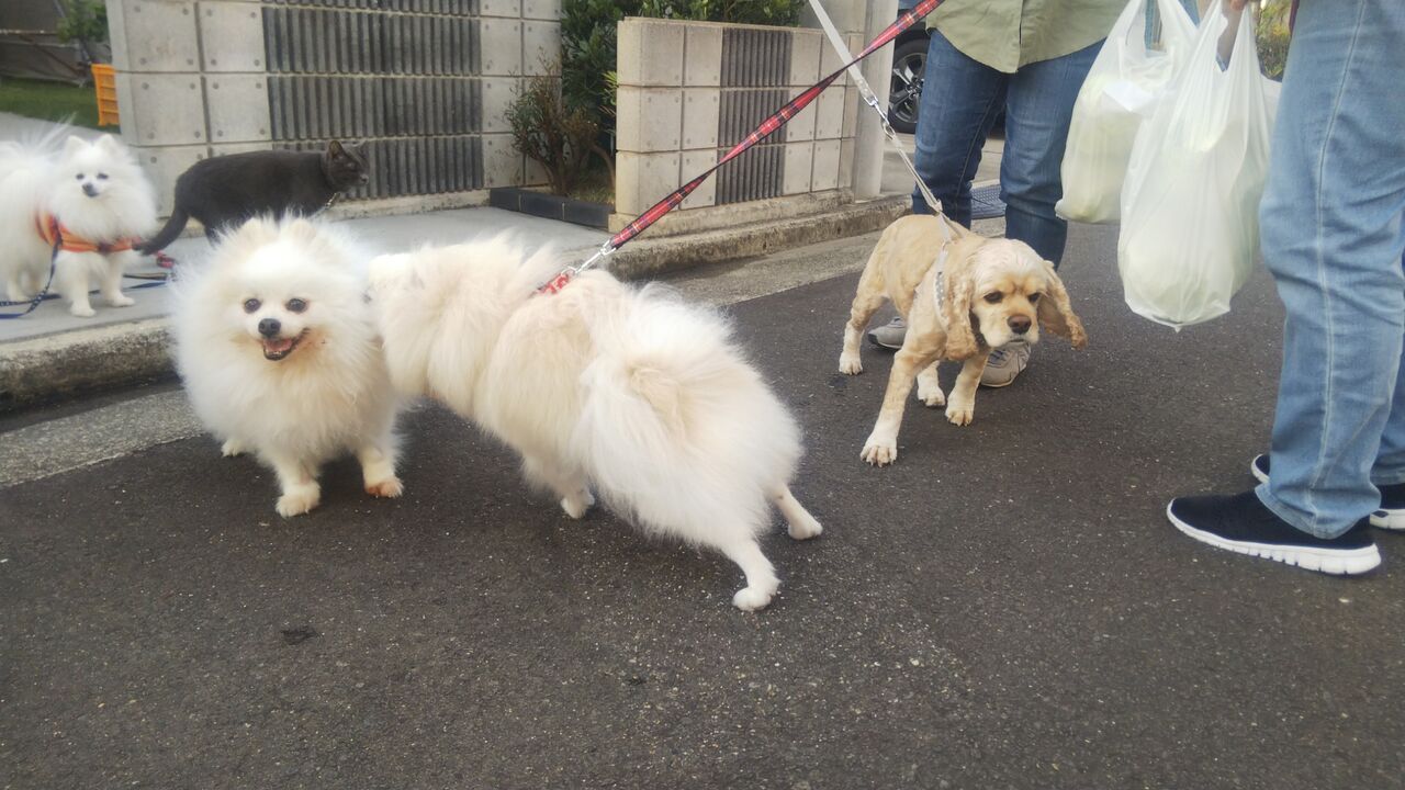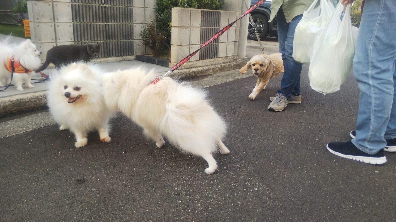 お散歩友達のわんこさんが2匹家の前まで来てくれたんです