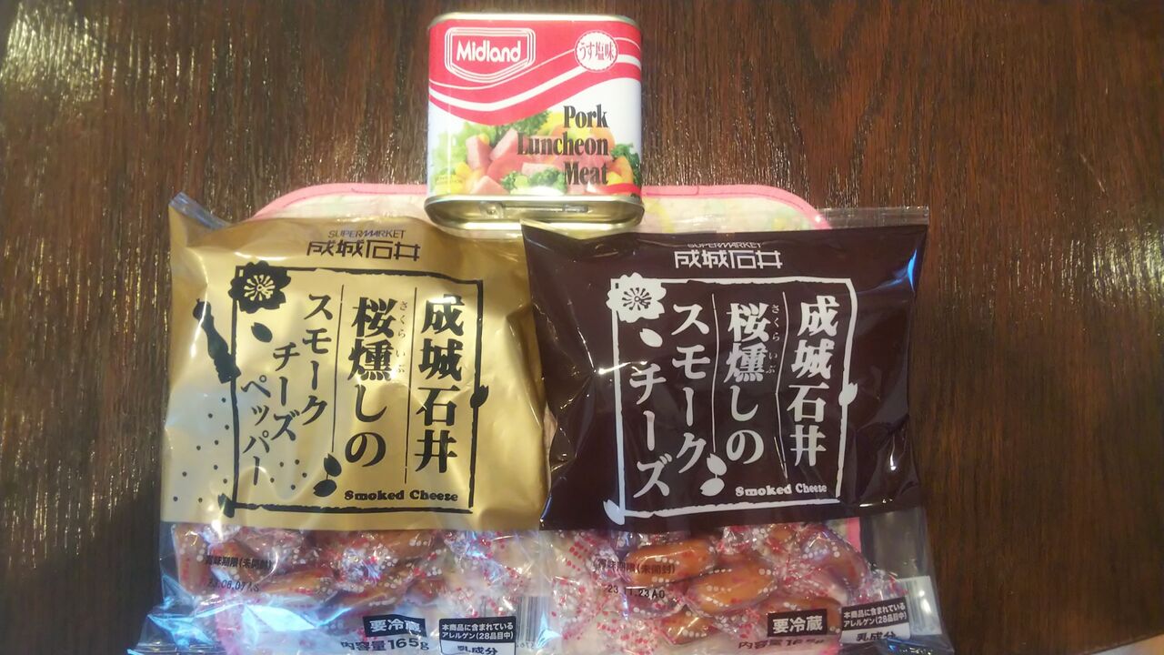 帰りに寄ったスーパーで 爺やが見つけ買ったスモークチーズとランチョンミート