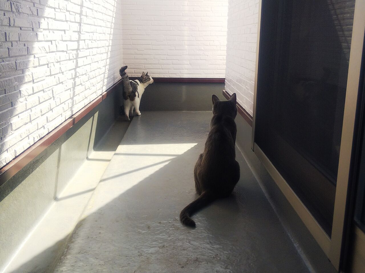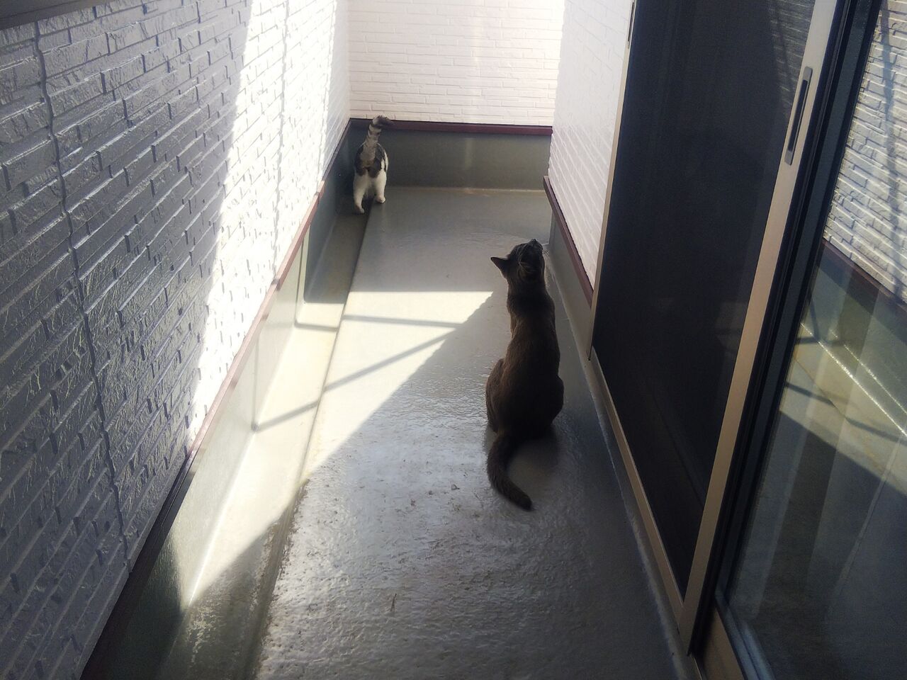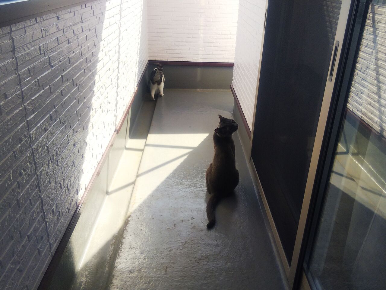 2匹があっちとこっち(ベランダ コの字型 死角が生まれる) に分かれてウロウロの時にはドキドキ