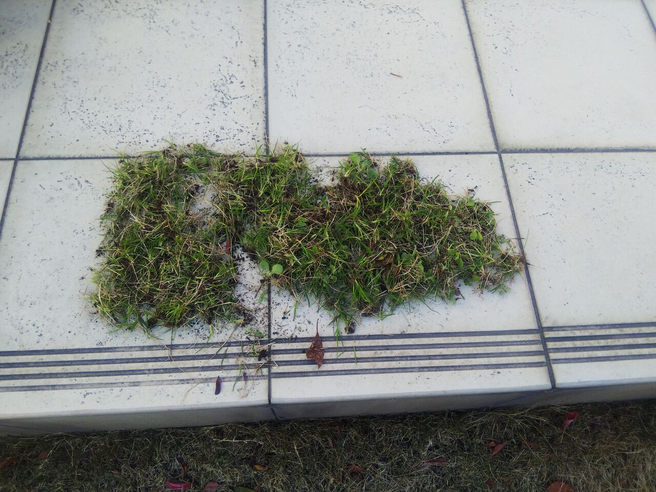 何故って茶色く枯れた芝のあちこちで 元気一杯草も嬉しそうに顔出してますもん(そう緑色はぜ~んぶ草・・・