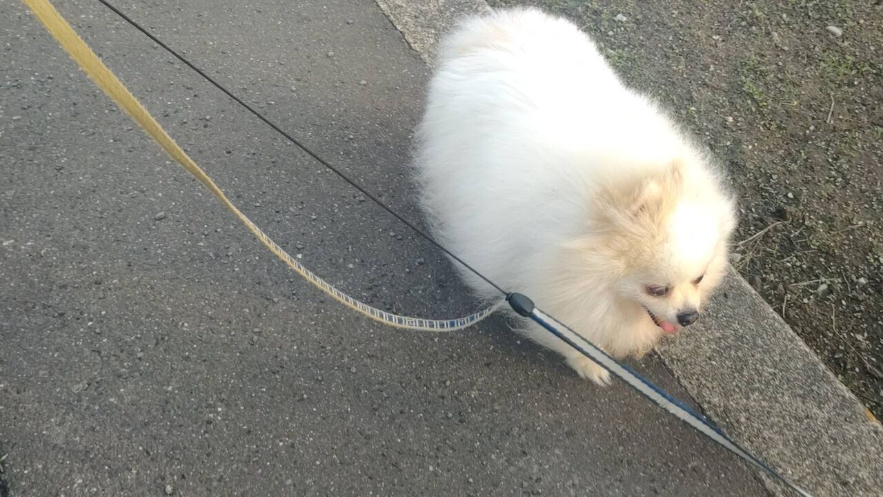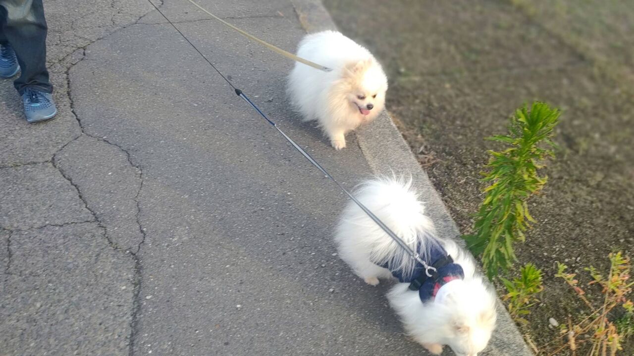 昨日の散歩も 100mくらい歩いたところで爺やが抱っこで連れ帰りました(無理は禁物)