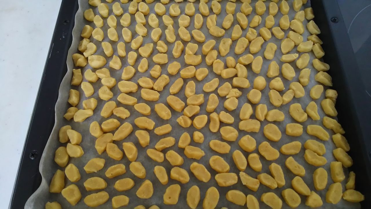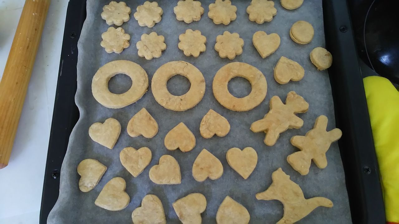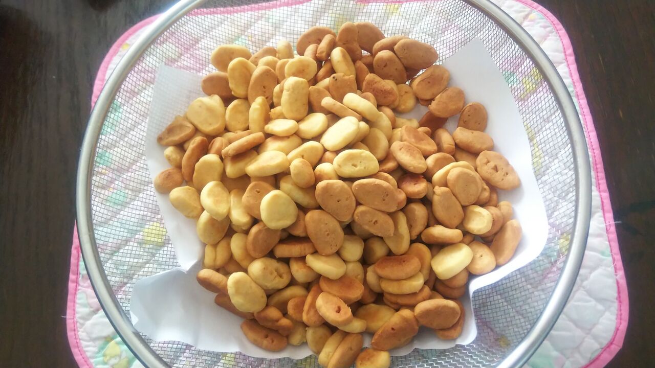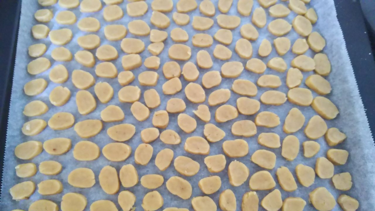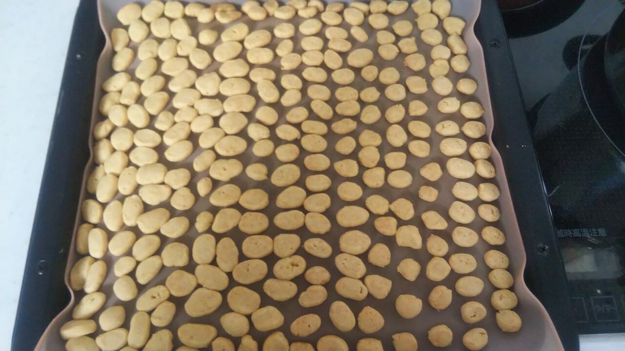 一応 ぽん太郎君のお祝いクッキー 何個かは ちゃんと型で抜いたものを作りましたが 残りは常備おやつ用です 包丁で小さく切って プチクッキーにしました(予熱ありで 160度 18分 こちらも天板2回分 つまり今日は4回も焼きました)
